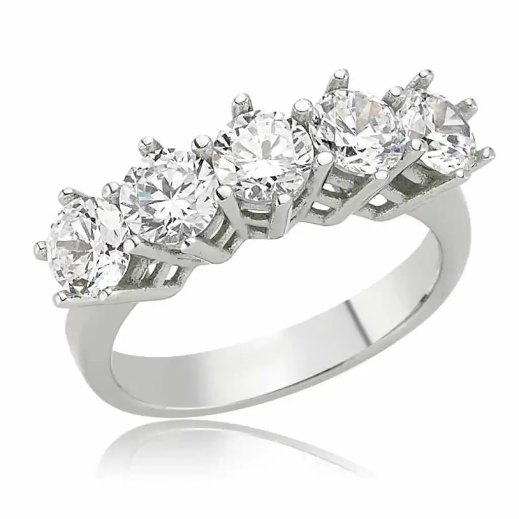 Gümüş Işıklı Kutulu 5 Taş Kadın Yüzük