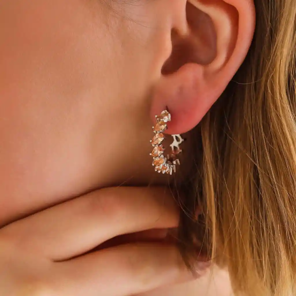 Gençlerin ve kendisini genç hissedenlerin tercih edeceği zirkon taşlardan oluşan bu tarz küpe severek kullanabileceğiniz bir aksesuar olacaktır. Kahverengi taşlı damla kadın küpe; 925 ayar gümüşten imal edilmiştir. Gümüş kahverengi taşlı damla kadın küpe üzerinde rodyum kaplama vardır. Rodyum kaplama yapılan gümüş kadın küpeler parlaklığını uzun süre muhafaza eder. Özel günlerde de severek kullanabileceğiniz ışıl ışıl bu küpe ile gecenin yıldızı olmaya ne dersiniz? Tüm gümüş kadın küpelerde olduğu gibi gümüş kahverengi taşlı damla kadın küpe de el emeği ile üretilmiştir. Gümüş ve değerli taşlar nedeniyle belirtilen ürün ağırlığında ± %10 sapma olabilmektedir.