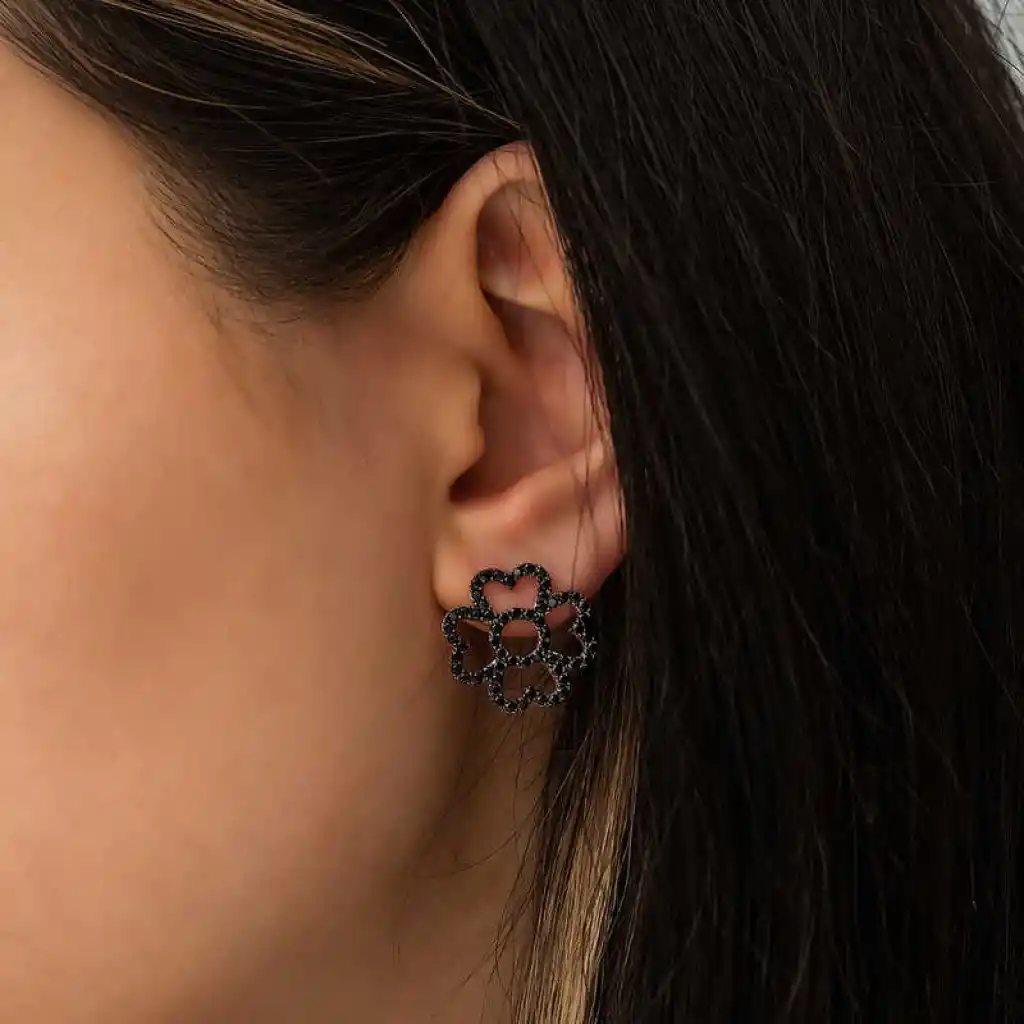 Sevdiklerinize duygularınızı ifade etmenin en özel ve zarif yolu O’na gönderebileceğiniz şık, rengarenk ve mis kokulu çiçeklerdir. Özel günlerde verilecek hediyeler arasında olan çiçek, bu kez gümüş kalp yapraklı çiçek küpe olarak tasarlandı... En kaliteli, en parlak, en ışıltılı taşlarla hazırlanmış gümüş kalp yapraklı çiçek bayan küpe sevgisini bir kez daha anlatmak isteyenleri, sen bir çiçeksin demek isteyenleri bekliyor. Bu özel tasarım çiçek bayan küpe 925 ayar gümüşten imal edilmiştir. Gümüş üzerine rose kaplama yapılmıştır. Rose kaplama yapılan gümüş bayan setler parlaklığını uzun süre muhafaza eder ve oksitlenmesi gecikir. Set üzerinde bulunan siyah taşlar zirkondur. Tüm bayan gümüş küpelerde olduğu gibi gümüş kalp yapraklı çiçek bayan küpe de el emeği ile üretilmiştir. Gümüş ve değerli taşlar nedeniyle belirtilen ortalama ürün ağırlığında ± %10 sapma olabilmektedir.