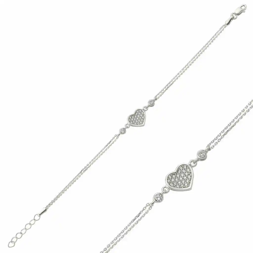 Aşkın ve sevginin bütün saflığıyla kucak açtığı en yüce tasarımdır kalp... Bu şık kalp deseniyle sevdiklerinizi mutlu etmeye ne dersiniz? Aşk dolu bu bilekliği sevgilinize doğum günü , sevgililer günü yada özel günlerde hediye ederek onları mutlu edebilirsiniz... Bu kalpli bileklik 925 ayar gümüşten imal edilmiştir. Gümüş üzerine rodyum kaplama yapılmıştır. Rodyum kaplama yapılan gümüş bayan bileklik modelleri parlaklığını uzun süre muhafaza eder ve oksitlenmeyi geciktirir. Üzerinde bulunan taşlar zirkondur. Tüm gümüş bayan bileklik modellerinde olduğu gibi gümüş kalpli bayan bileklik de el emeği ile üretilmiştir. Gümüş ve değerli taşlar nedeniyle belirtilen ürün ağırlığında ± %10 sapma olabilmektedir.
