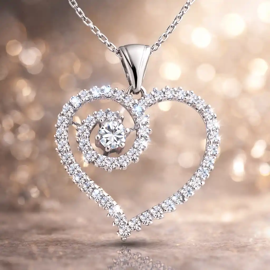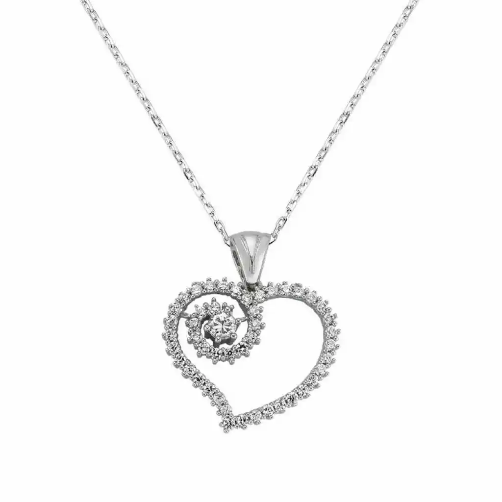 Kalp deseniyle aşkı ifade eden gümüş kalpli bayan kolye modeli ile sevginiz, sevdiğiniz kadının teninde hayat bulsun. Genç sevgililerin ve kendini genç hissedenlerin özel günlerde seçebileceği bu kalpli bayan kolye modeli ile sevdiğinizin boynunu aşkla süsleyin. Sizin olduğu kadar sevdiklerinizin de keyifle takacağı kalp desenli kolye modeli sevdiğinize en güzel hediyelerden biri olacaktır. Kalpli bayan kolye modeli 925 ayar gümüşten imal edilmiştir. Gümüş üzerine rodyum kaplama yapılmıştır. Rodyum kaplama yapılan gümüş bayan kalpli kolye modelleri parlaklığını uzun süre muhafaza eder ve oksitlenmesi gecikir. Kolye üzerinde bulunan beyaz taşlar zirkondur. Gümüş olan zincir boyu ortalama 45 cm"dir. Tüm bayan kolye modellerinde olduğu gibi gümüş kalpli bayan kolye modeli de el emeği ile üretilmiştir. Gümüş ve değerli taşlar nedeniyle belirtilen ortalama ürün ağırlığında ± %10 sapma olabilmektedir.
