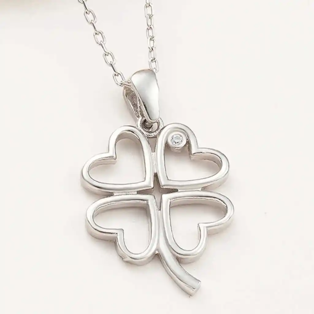 Gümüş Kalpli Dört Yapraklı Yonca Kadın Kolye