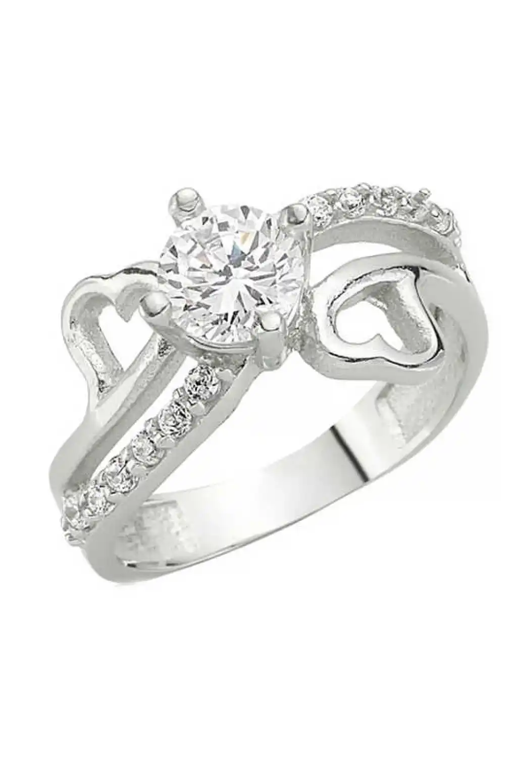 Gümüş Kalpli Tek Taş Bayan Yüzük