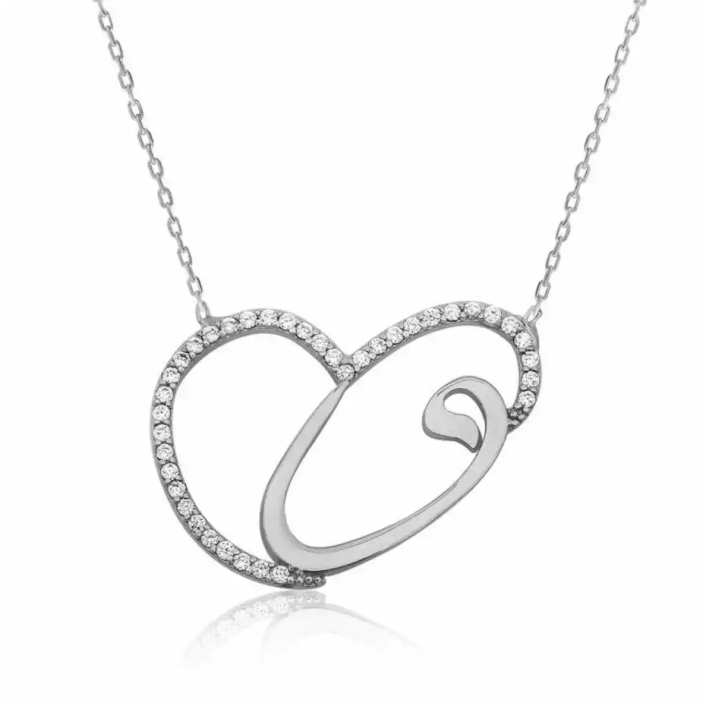 ""Vav"" harfi inanların kulluğunu simgeleyerek yaratıcısına en yakın olduğu halidir. Bu sebeple kullanılan ""Vav gibi olmak"" tabiri, ""kulluğunu bilmek ve secde etmek"" anlamına gelmektedir. Ayrıca anne karnındaki cenine de benzetilen Vav harfi Allah"ın Vahid ismini ve ""bir"" olduğunu da simgelemektedir. Alllah"a kulluğun manası ""Vav""dadır ve kainatın kendisidir. Hem sizin, hem sevdiklerinizin keyifle takacağı manevi anlamı yüksek olan bu gümü kalpli vav bayan kolye modeli tercih edilebilecek en iyi kolyelerdendir. Gümüş kalpli vav bayan kolye modeli 925 ayar gümüşten imal edilmiştir. Gümüş üzerine rodyum kaplama yapılmıştır. Rodyum kaplama yapılan gümüş kalpli vav bayan kolye modelleri parlaklığını uzun süre muhafaza eder ve oksitlenmesi gecikir. Kolye üzerinde bulunan beyaz taşlar zirkondur. Gümüş olan zincir boyu ortalama 45 cm"dir. Tüm bayan kolye modellerinde olduğu gibi gümüş kalpli vav bayan kolye modeli de el emeği ile üretilmiştir. Gümüş ve değerli taşlar nedeniyle belirtilen ortalama ürün ağırlığında ± %10 sapma olabilmektedir