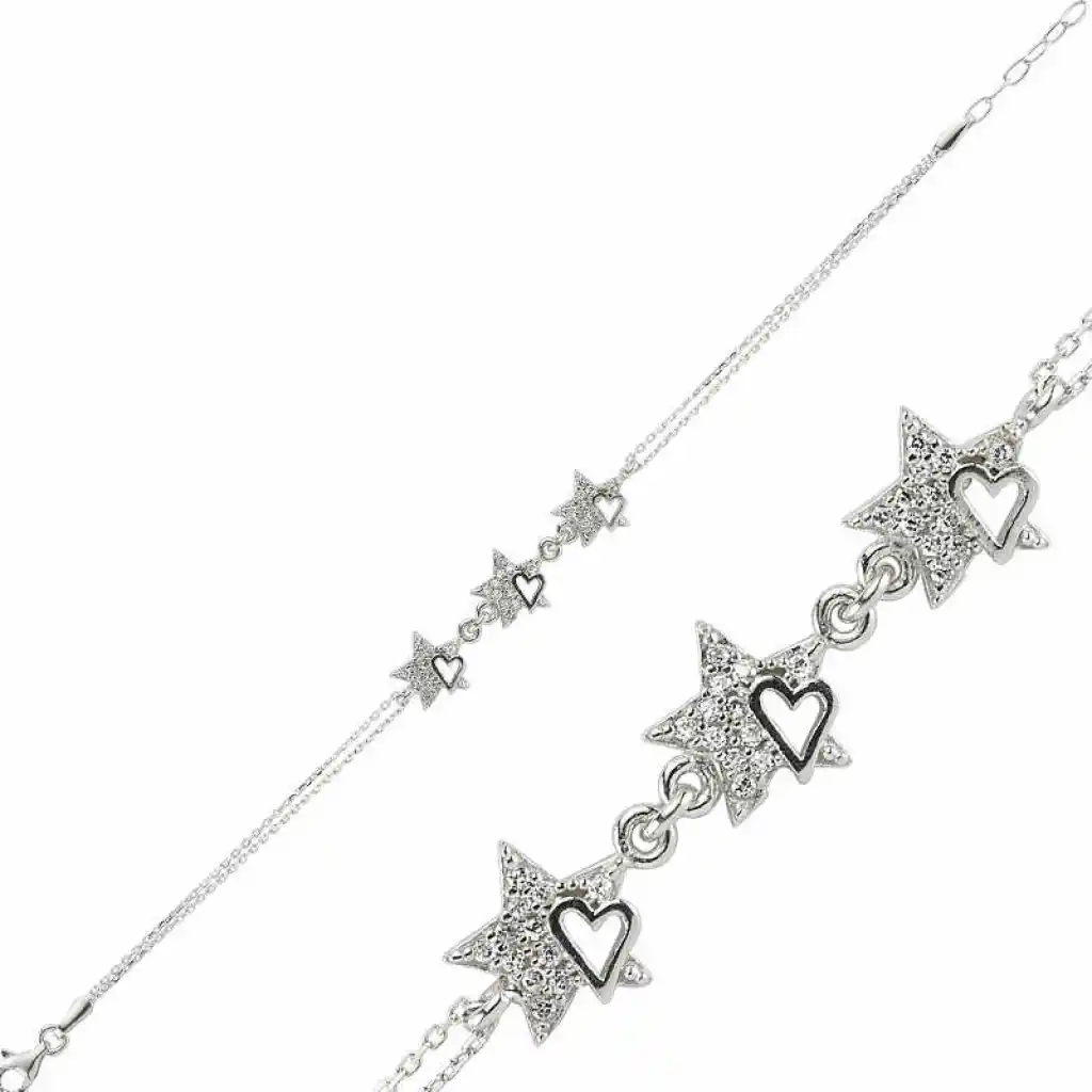 Gümüş Kalpli Yıldız Bayan Bileklik