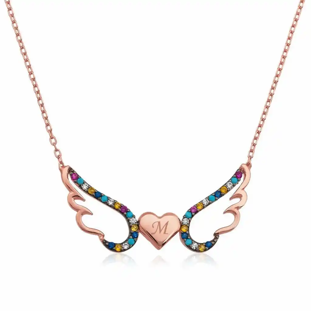 Gümüş Kanatlı Kalp Kolye