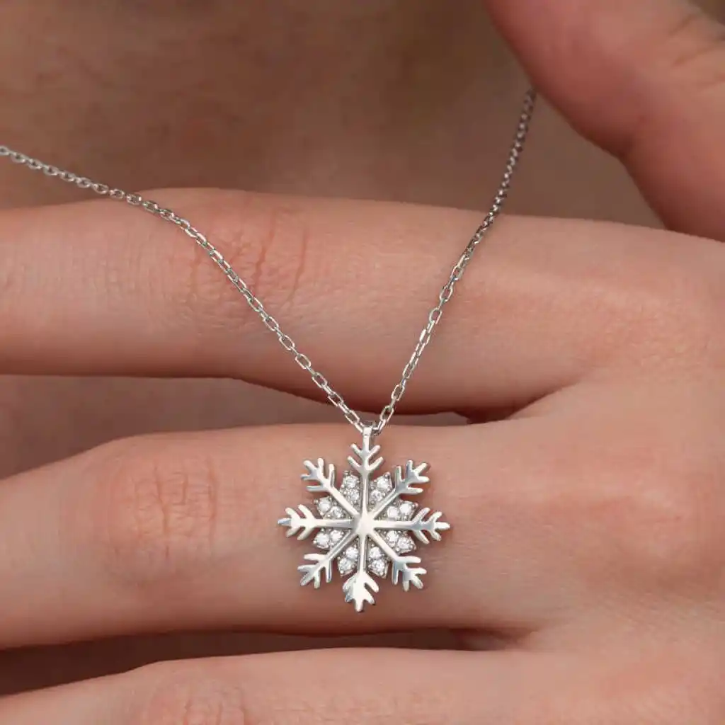 Kadınların ışıltısı, berraklığı kar tanesine benzetilip özel olarak tasarlanmıştır. Kar tanelerinin her birinin kadınlar gibi eşsiz ve ayrı kıymette olması onları özel kılan bir diğer özelliktir. Asilliği her dönemde dikkat çekmeyi başarmıştır. Bunun yanında insanların tıpkı kar taneleri gibi birbirlerine zarar vermeden de mutlu bir şekilde yaşayabileceklerini sembolize etmektedir.Bu şık kolye; doğum günü hediyesi, sevgililer günü veya özel günlerde tercih edilebilecek mükemmel bir seçenektir.Kolye; 925 ayar gümüşten imal edilmiştir. Gümüş üzerine rodyum kaplama yapılmıştır. Gümüş ve değerli taşlar nedeniyle belirtilen ortalama ürün ağırlığında ± %10 sapma olabilmektedir.