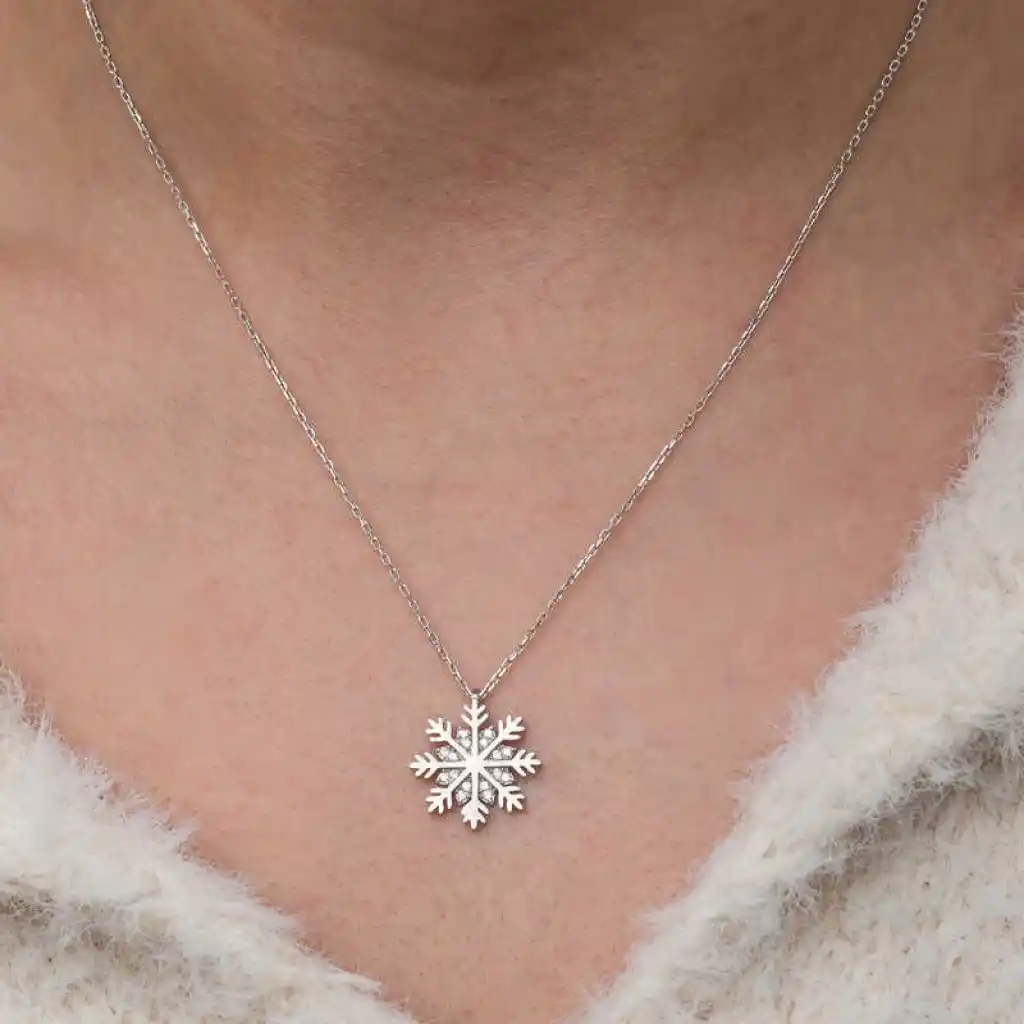 Kadınların ışıltısı, berraklığı kar tanesine benzetilip özel olarak tasarlanmıştır. Kar tanelerinin her birinin kadınlar gibi eşsiz ve ayrı kıymette olması onları özel kılan bir diğer özelliktir. Asilliği her dönemde dikkat çekmeyi başarmıştır. Bunun yanında insanların tıpkı kar taneleri gibi birbirlerine zarar vermeden de mutlu bir şekilde yaşayabileceklerini sembolize etmektedir.Bu şık kolye; doğum günü hediyesi, sevgililer günü veya özel günlerde tercih edilebilecek mükemmel bir seçenektir.Kolye; 925 ayar gümüşten imal edilmiştir. Gümüş üzerine rodyum kaplama yapılmıştır. Gümüş ve değerli taşlar nedeniyle belirtilen ortalama ürün ağırlığında ± %10 sapma olabilmektedir.