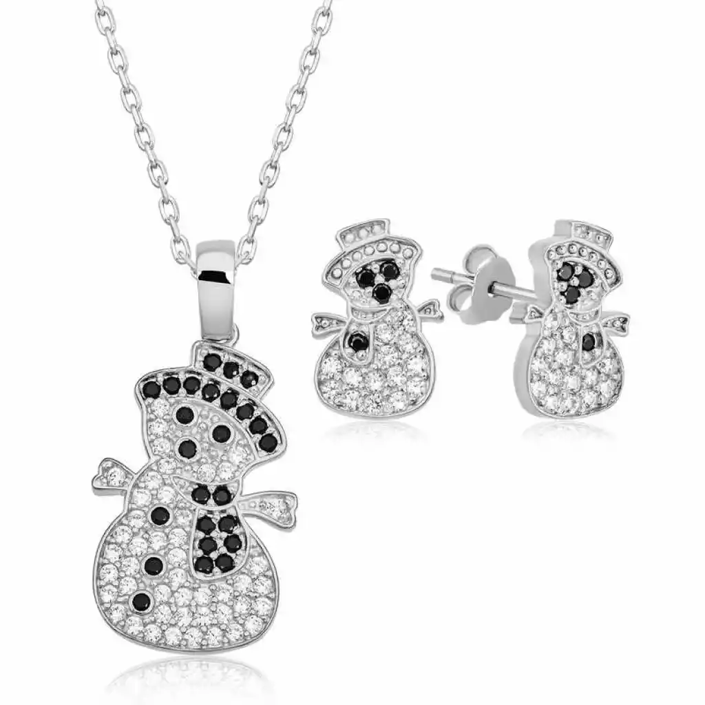 Kışımıza neşe katan kardan adamlar ile cıvıl cıvıl bu şık tasarım kadın setler sizler için tasarlandı. Set; doğum günü hediyesi, sevgililer günü hediyesi, Yılbaşı hediyesi veya annelere hediye olarak özel günlerde tercih edilebilecek mükemmel bir seçenektir. Kardan adam Set 925 ayar gümüşten imal edilmiştir. Gümüş üzerine rodyum kaplama yapılmıştır. Rodyum kaplama yapılan gümüş setler parlaklığını uzun süre muhafaza eder oksitlenmesi gecikir. Gümüş kadın setin üzerinde bulunan taşlar zirkondur. Tüm gümüş setlerde olduğu gibi gümüş kardan adam kadın setinde tamamı el emeği ile üretilmiştir . Gümüş ve değerli taşlar nedeniyle belirtilen ortalama ürün ağırlığında ± %10 sapma olabilmektedir.
