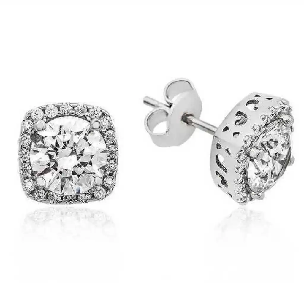 Gümüş Kare Montür Pırlanta Modeli Küpe