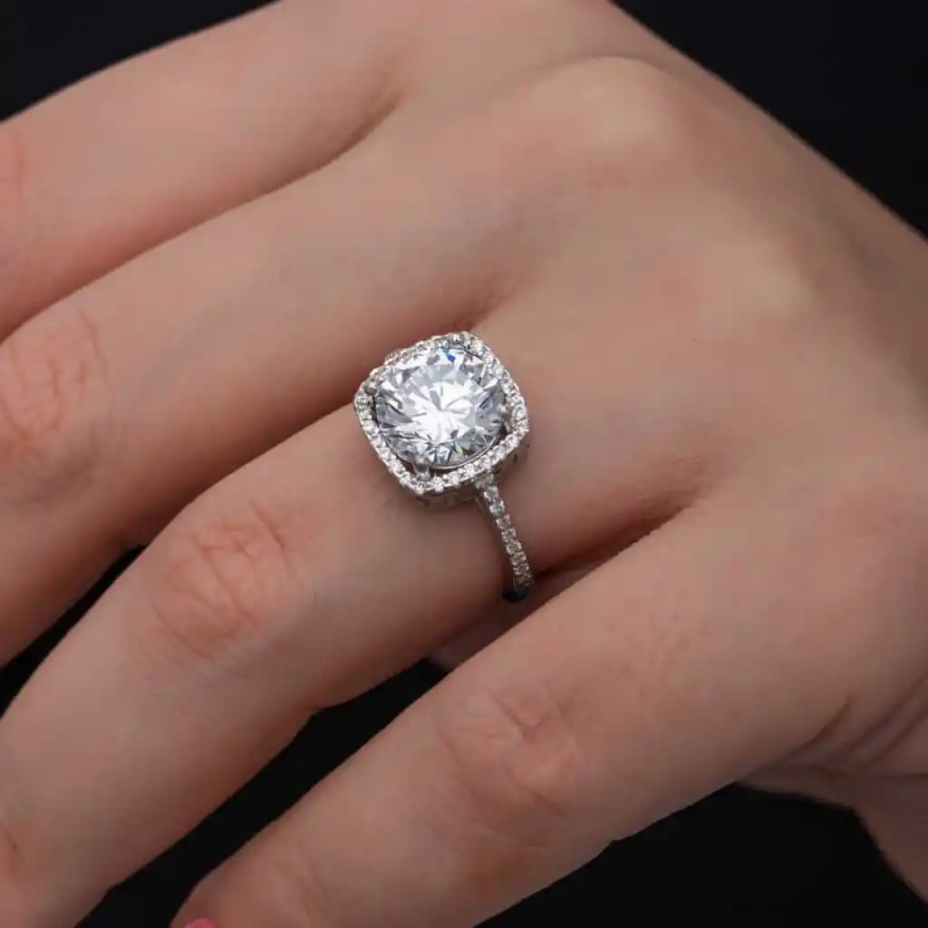 Gümüş Kare Montür Tek Taş Kadın Yüzük