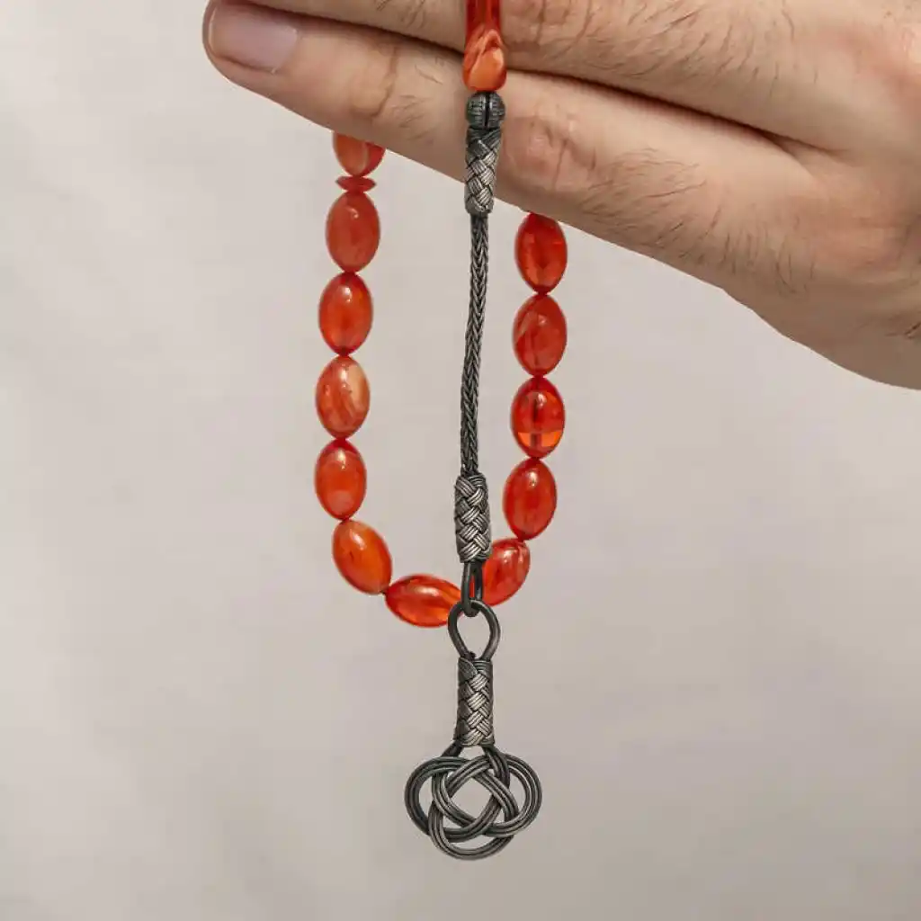 Gümüş Kazaz Püsküllü Sıkma Kehribar Tesbih