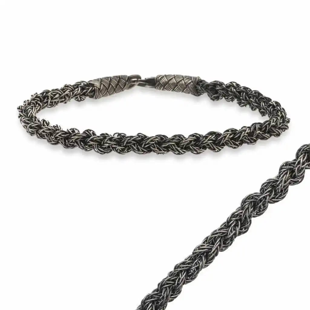 Kazaziye bileklik tamamen el emeği göz nurudur. Şık bir görünüm yakalamak isteyenlere hitap eden, modası geçmeyecek olan kazaz örgü bileklik sizleri bekliyor. Gümüş kazaziye örgü bileklik; doğum günü hediyesi, sevgililer günü hediyesi veya özel günlerde tercih edilebilecek mükemmel bir seçenektir. Gümüş bileklik 925 ayar gümüşten imal edilmiştir. Gümüş üzerine oksit kaplama yapılmıştır. Gümüş ve değerli taşlar nedeniyle belirtilen ortalama ürün ağırlığında ± %10 sapma olabilmektedir.