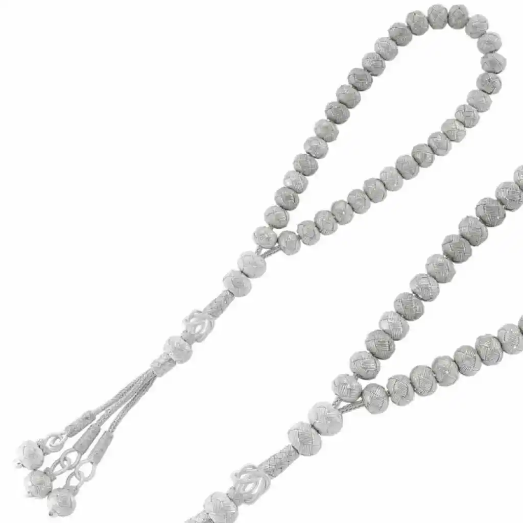 Tesbih, türk-islam kültüründe asırlar boyunca dilden dile gönülden gönüle aktarılan dualarda önemli bir miras öğesi olarak her zaman yer alır. İslâm-Türk medeniyetinde tesbih, kültür motifi ve dua aracı olarak önemli bir kilometre taşı olma hüviyetine sahiptir. Gönüllerinde her daim zikir bulunan mümin ve mütevekkil tesbih ustalarımız, asırlar boyunca tesbih yapımını, eskimez medeniyetimizin bir sanat konusu hâline getirmiştir. Yine, yüzyıllar boyunca tesbih ustalarının parmakları arasından dökülen dua taneleri, şüphesiz önce inanç sahiplerinin, daha sonra da ticari ya da gayrı ticari koleksiyonerlerin vazgeçemediği bir unsur haline gelmiştir. Yürekleri duadan incelmiş Hak erleri her daim tesbihine sahip çıkmıştır. Erkek için alınabilinecek anlamlı bir hediye olan Tesbih modelleri, mertliğin dürüstlüğün ve inancın da sembolüdür. Tesbih severlerin ve koleksiyoncuların en fazla ilgisini çeken modellerden biri de el emeği göz nuru kazaz tesbihlerdir. Tesbih tamamen saf gümüş iplerin örülmesi şeklinde yapılarak hazırlanmaktadır. Siz de iyi bir tesbih severseniz veya bu tarz tesbihlere merakınız varsa, Trabzon kazaz tesbihler tam size göre... Ürünlerimizin tamamı el emeği ile üretilmiştir. Gümüş ve değerli taşlar nedeniyle belirtilen ortalama ürün ağırlığında ± %10 sapma olabilmektedir.