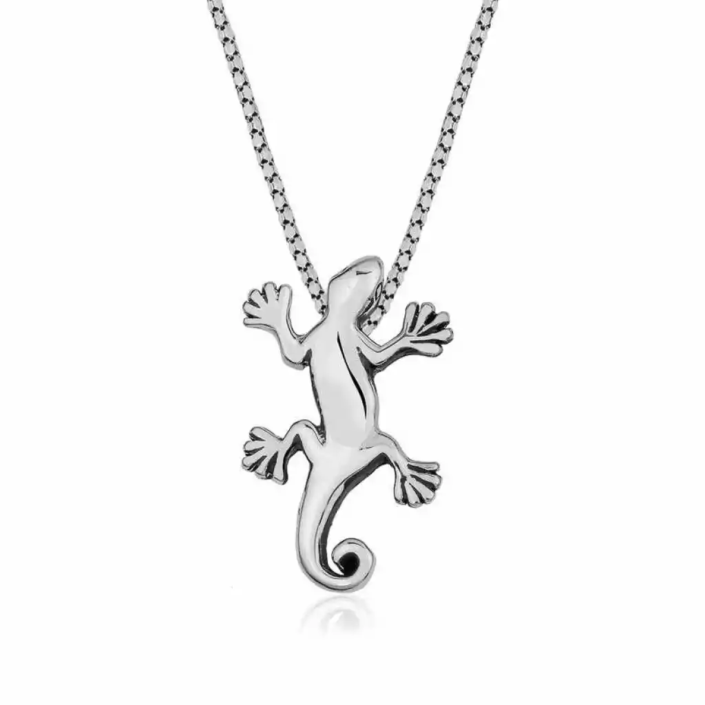 Kertenkeleler kimileri için sevimli kimileri içinse ürkütücü hayvanlardır. Kertenkelelerin beklenmeyen bir durum karşısında kuyruğunu bırakıp gitmeleri ve kuyruğunun bir ay içinde yeniden oluşması bu hayvana mistik bir hava katmaktadır. Kertenkele aksesuarlarını tercih eden kişiler yaşamı olduğu gibi yaşayan ve her şeyi olacağına bırakan bir kişiliğe sahip oldukları izlenimini sergilerler. Beklenmedik bir durumda bir parçasını bırakıp giden kertenkele, kendini koruma yöntemini de en iyi şekilde geliştirmiştir canlılardan biridir. Herhangi bir olumsuz durumda korunduğuna inanan kişiler, bu kolyeyi tercih edebilirler. Kolye 925 ayar gümüşten imal edilmiştir. Bu kolye üzerinde oksit kaplama yapılmıştır. Oksit kapalama yapılan gümüşler eskitme görünüme sahiptir. Tüm gümüş kolye modellerinde olduğu gibi gümüş kertenkele kolye modeli de el emeği ile üretilmiştir. Gümüş ve değerli taşlar nedeniyle belirtilen ortalama ürün ağırlığında ± %10 sapma olabilmektedir.