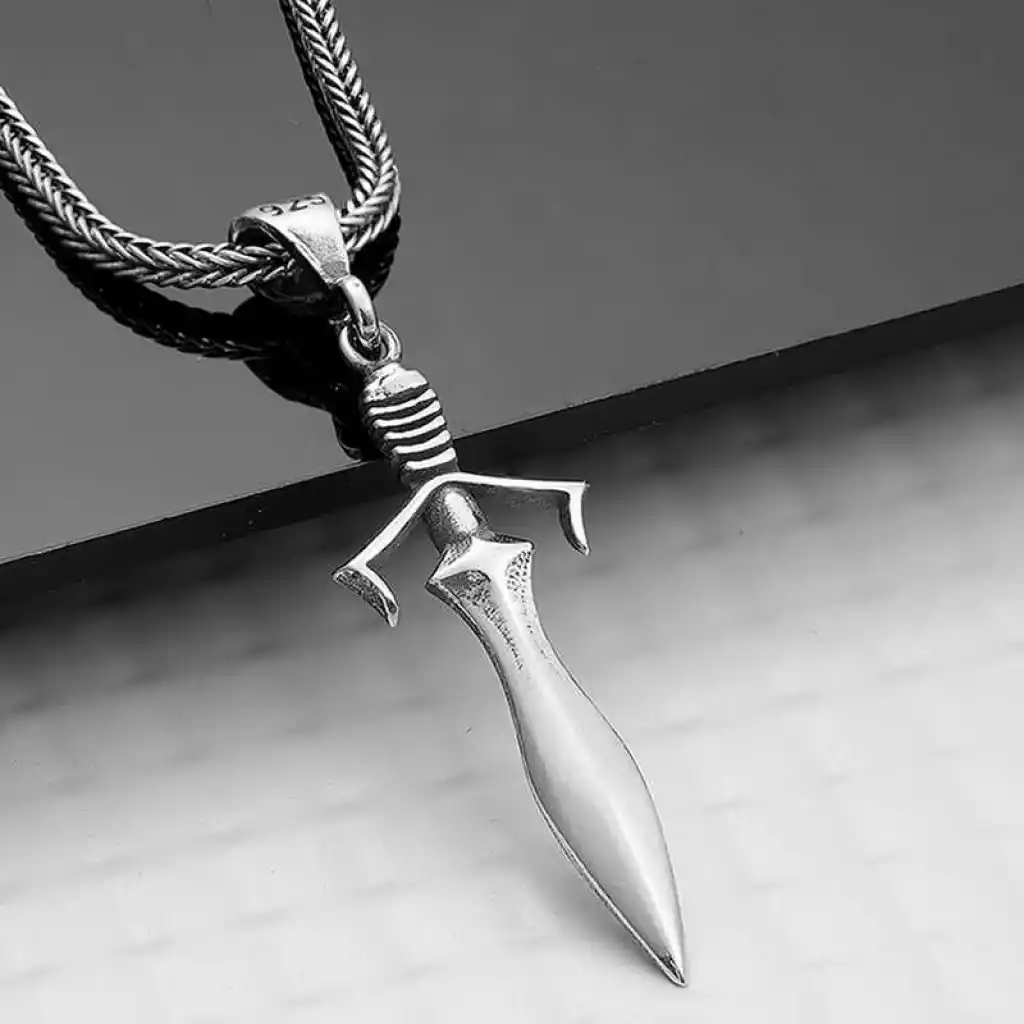 Kılıç tarih boyunca bir çok uygarlık tarafından kullanılmış silahların icadından önce insan oğlunun iktidar gücünü ortaya koyup uygulayabilmesi için kullandığı çeşitli boyutlarda olabilen, keskin kenarlı, sivri uçlu bir silahtır. Kılıcın boyutu tarihler boyunca,farklı uluslarda,farklı boyutlarda olmuştur. Türkler Orta Asya’ya göç edince kılıç yapım merkezleri kurarlar. Kılıç geleneği Selçuklular ve Osmanlı dönemlerinde devam eder. Anadolu kılıçlarını batının kılıçlarından ayıran özellik; eğri, çok su verilmiş ve eğriliklerinden dolayı çok rahat kullanılabilir olmalarıydı. Türkler kılıca, üzerine yemin edilebilecek derecede önem atfederken, demir ve onu eriten ateşin ruhsal bir yönü olduğunu savunmuşlardır. Yetenekli bileklerde kılıç harikalar yaratabilirdi ve Eski Türk uygarlıklarında süvariler, atları ve kılıçları ile gömülmek istemişlerdir. Kılıç, insanın zor bir maden olan demir üzerinde ateşle neler yapabileceğinin en güzel kanıtlarından biridir. Hatta isterse onu bir savaş aleti haline getirebilir. Eğer eski zaman kahramanlıkları ilginizi çekiyorsa, yakın temasla mücadeleyi sahici buluyorsanız, sadece bir kılıç kolyeniz eksik demektir. Gümüş ve değerli taşlar nedeniyle ürün ağırlığında ± %10 sapma olabilmektedir.