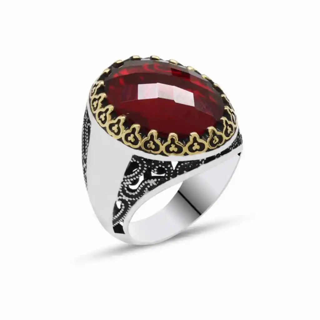 Gümüş Kırmızı Zirkon Taşlı Erkek Yüzük