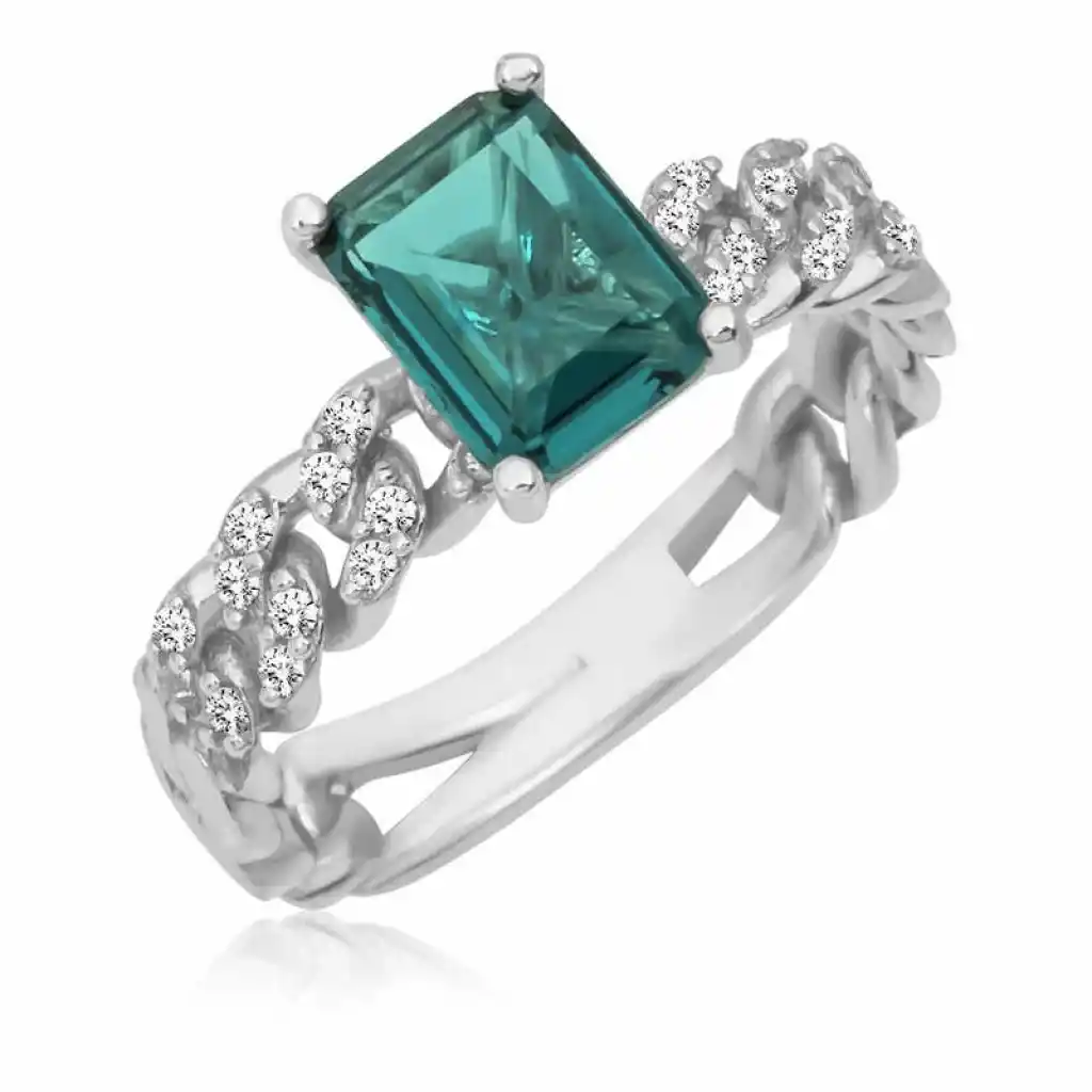 Gümüş Koyu Yeşil Baget Taşlı Kadın Yüzük