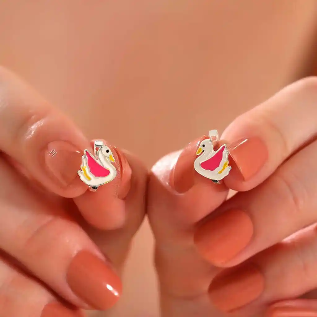 Dünya tatlısı sıcacık sevimli dostlarımız hayvanları sizler için tasarladık. Bu ışıl ışıl ve farklı tasarımıyla bu şık küpe; 925 ayar gümüşten imal edilmiştir. Gümüş üzerine rodyum kaplama yapılmıştır. Rodyum kaplama yapılan gümüş çocuk küpeleri parlaklığını uzun süre muhafaza eder, oksitlenmesi gecikir. Tüm gümüş küpelerde olduğu gibi gümüş kuğu çocuk küpenin de tamamı el emeği ile üretilmiştir. Gümüş ve değerli taşlar nedeniyle belirtilen ortalama ürün ağırlığında ± %10 sapma olabilmektedir.