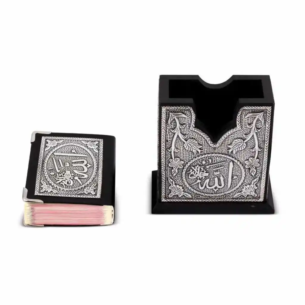 Usta ellerin maharetiyle şık bir görselliğe getirilmiş olan ahşap üzerine gümüş işlemeli kutu ve kuran-ı keriminbsp;sizlere en güzel görünüm ve tasarımla sunulmuştur.Ahşap Kutu ve Kuran-ı Kerim 925 ayar gümüş işlemedir.nbsp;Kutu Boyu nbsp; nbsp; nbsp; nbsp; nbsp;: 7Kutunbsp;Genişliği nbsp; nbsp; : 7 cmKuran-ı Kerim Boyu nbsp;: 6Kuran-ı Kerim Genişliği : 5nbsp;Ürünlerimizin tamamı el emeği ile üretilmiştir ve değerli taşlar nedeniyle ürün ağırlığında ± %5 sapma olabilmektedir.