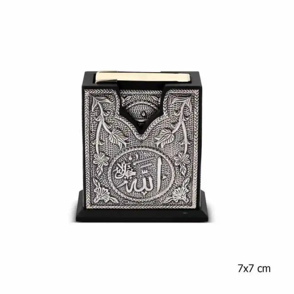 Usta ellerin maharetiyle şık bir görselliğe getirilmiş olan ahşap üzerine gümüş işlemeli kutu ve kuran-ı keriminbsp;sizlere en güzel görünüm ve tasarımla sunulmuştur.Ahşap Kutu ve Kuran-ı Kerim 925 ayar gümüş işlemedir.nbsp;Kutu Boyu nbsp; nbsp; nbsp; nbsp; nbsp;: 7Kutunbsp;Genişliği nbsp; nbsp; : 7 cmKuran-ı Kerim Boyu nbsp;: 6Kuran-ı Kerim Genişliği : 5nbsp;Ürünlerimizin tamamı el emeği ile üretilmiştir ve değerli taşlar nedeniyle ürün ağırlığında ± %5 sapma olabilmektedir.