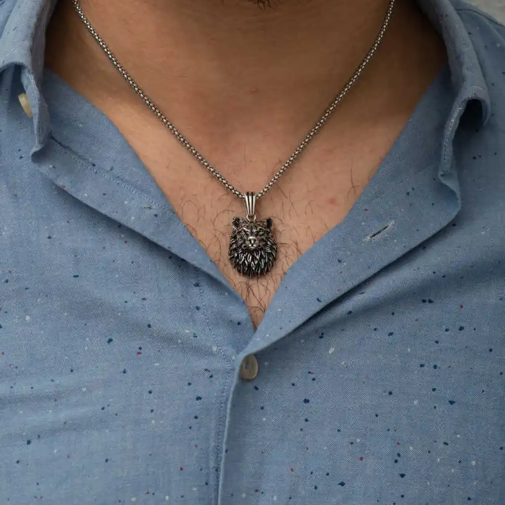• ​Gümüş Kurt Kafası Kolye Hayvan Figürlü Kolyeler ​Gümüş Kurt Kafası KolyeKurt genelde insana olan aşırı benzerlik ve çekiminden dolayı aksesuarlar arasında sık kullanılır. Kurtlar çok güçlü kabul edil