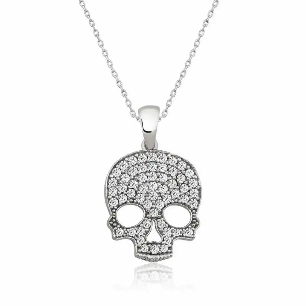 Kuru kafanın gizem ve ölüm anlamı vardır. Bu esrarengiz kolye; doğum günü hediyesi, sevgililer günü hediyesi olarak özel günlerde tercih edilebilecek mükemmel bir seçenektir. Kuru kafa bayan kolye 925 ayar gümüşten imal edilmiştir. Bu özel tasarım üzerinde bulunan taşlar zirkondur. Bu bayan gümüş kolye üzerine rodyum kaplama yapılmıştır. Rodyum kaplama yapılan kolyeler parlaklığını uzun süre muhafaza eder, oksitlenmesini geciktirir. Tüm gümüş kolyelerde olduğu gibi bu gümüş kuru kafa bayan kolye de el emeği ile üretilmiştir. Gümüş ve değerli taşlar nedeniyle belirtilen ortalama ürün ağırlığında ± %10 sapma olabilmektedir.