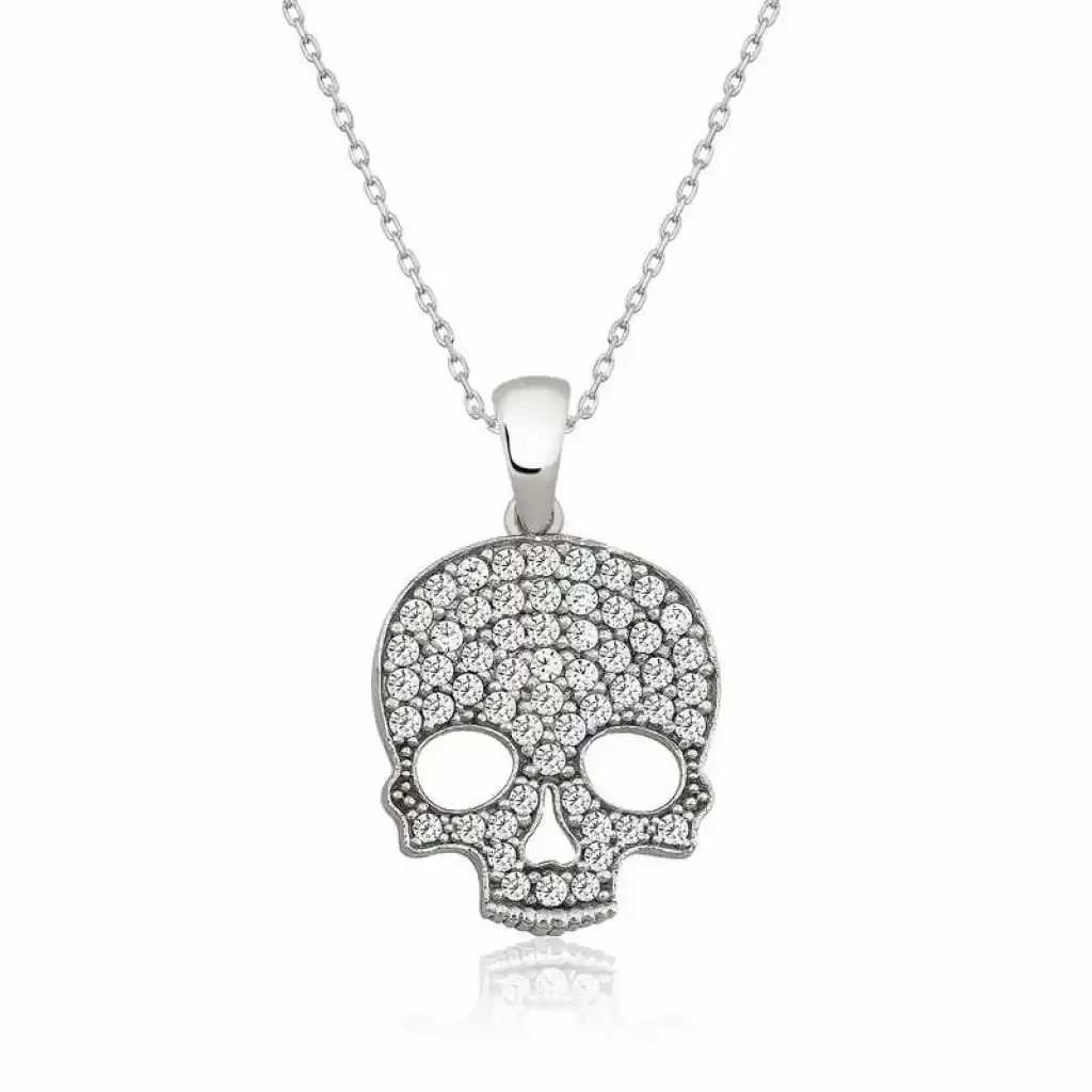 Kuru kafanın gizem ve ölüm anlamı vardır. Bu esrarengiz kolye; doğum günü hediyesi, sevgililer günü hediyesi olarak özel günlerde tercih edilebilecek mükemmel bir seçenektir. Kuru kafa bayan kolye 925 ayar gümüşten imal edilmiştir. Bu özel tasarım üzerinde bulunan taşlar zirkondur. Bu bayan gümüş kolye üzerine rodyum kaplama yapılmıştır. Rodyum kaplama yapılan kolyeler parlaklığını uzun süre muhafaza eder, oksitlenmesini geciktirir. Tüm gümüş kolyelerde olduğu gibi bu gümüş kuru kafa bayan kolye de el emeği ile üretilmiştir. Gümüş ve değerli taşlar nedeniyle belirtilen ortalama ürün ağırlığında ± %10 sapma olabilmektedir.