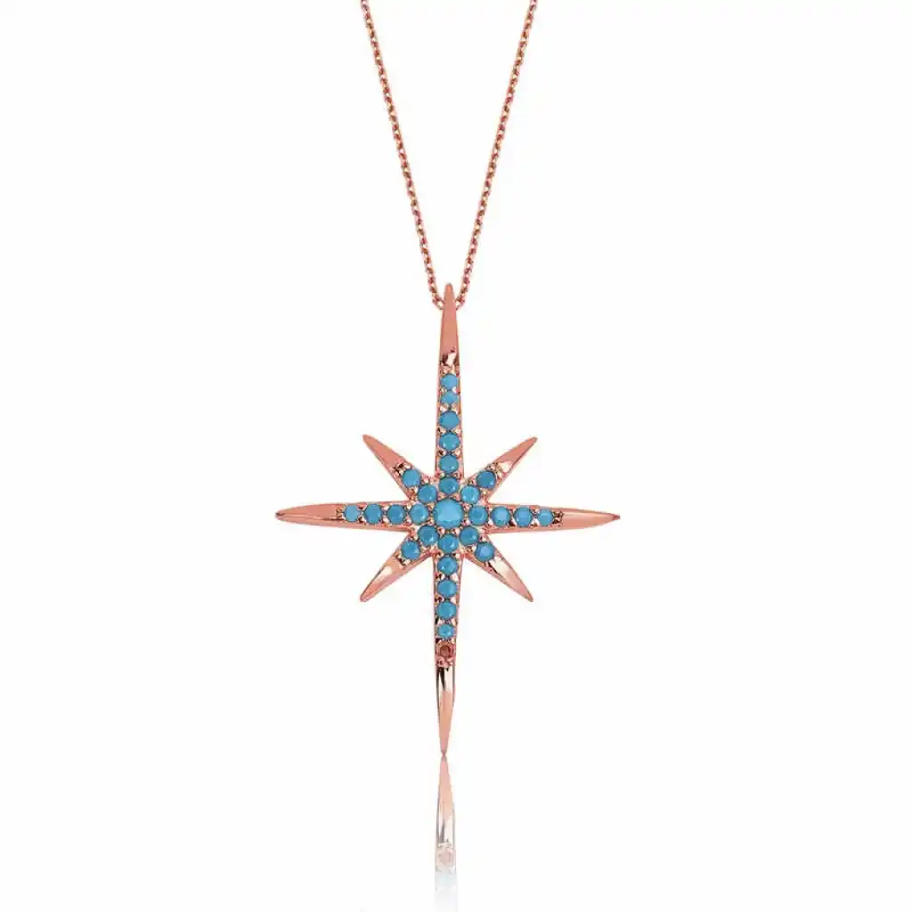 Kutup yıldızı milyonlarca yıldızdan sadece biridir ama aydan en çok etkilenen yıldızdır. Tek isteği aya kendini beğendirebilmektir. Ağladıkça parıldar onun da yüreği, ne kadar soğuk olduğunu düşünür. Onun yerine üşür. Dünya üzerinde görüldüğü her anı aslında onun gerçeğe dönüşen düşüdür. Gökyüzü ne kadar büyükse kutup yıldızı o kadar küçüktür. Kutup yıldızı ulaşamaz aya ne kadar hızlı ilerlese de, ne de ay güneşe. Güneş sıcağından vazgeçip dönmez yüzünü ona. Siz de kıyamete kadar bitmeyecek aşkınızı bu anlamlı kutup yıldızı kolye ile taçlandırın. Bu şık kolye modeli 925 ayar gümüşten imal edilmiştir. Gümüş üzerine rose altın kaplama yapılmıştır. Rose altın kaplama yapılan gümüş kolyeler parlaklığını uzun süre muhafaza eder, gümüş rengini pembe renge dönüştürür ve oksitlenmeyi geciktirir. Üzerinde bulunan taşlar zirkondur. Zincir boyu ortalama 45 cm'dir. Ürünlerimizin tamamı el emeği ile üretilmiştir. Gümüş ve değerli taşlar nedeniyle belirtilen ortalama ürün ağırlığında ± %10 sapma olabilmektedir.