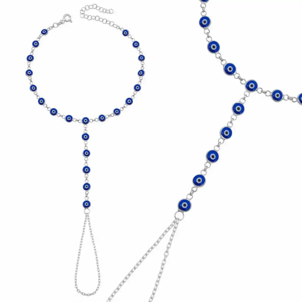Geleneksel nazar boncuğu motifinin modern tasarımla buluştuğu Gümüş Lacivert Nazar Boncuklu Şahmeran Bileklik,zarafeti ve anlamı bir arada sunuyor.Her detayında özenle yerleştirilmiş lacivert nazar boncukları,olumsuz enerjilere karşı koruma sağlarken stilinizi tamamlayan şık bir dokunuş katar.Bilekten parmağa uzanan zarif zincir tasarımı sayesinde hem klasik hem de bohem tarzlara mükemmel uyum sağlar.Ayarlanabilir yapısıyla farklı bilek ölçülerine kolayca uyarlanabilir.Gümüş Mavi nazar boncuklu şahmeran 925 ayar gümüşten imal edilmiştir.Gümüş üzerine rodyum kaplama yapılarak parlaklığını uzun süre muhafaza etmesi sağlanmaktadır.Kadın gümüş şahmeran modellerimizin tamamı el emeği ile üretilmiştir.Gümüş ve değerli taşlar nedeniyle belirtilen ortalama ürün ağırlığında ± %10 sapma olabilmektedir.