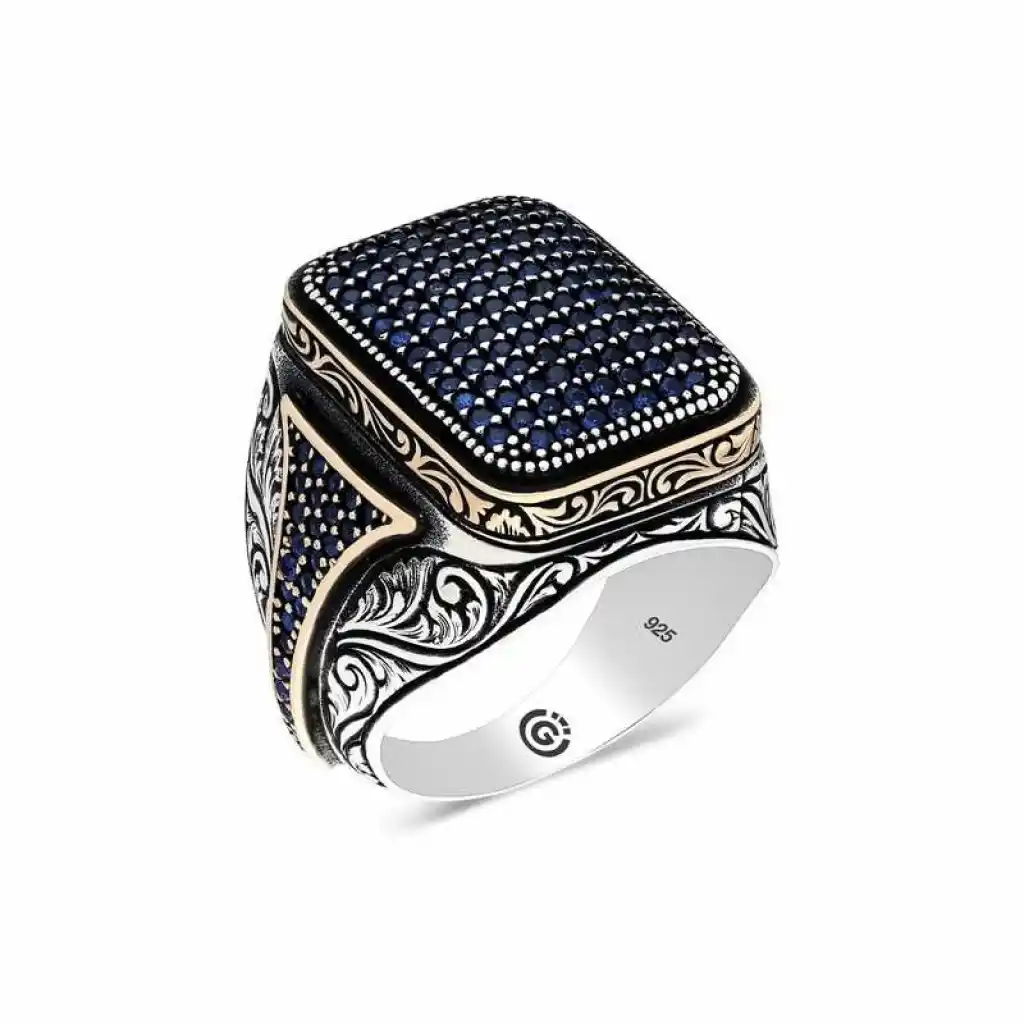 Gümüş Lacivert Zirkon Taşlı Kare Erkek Yüzük