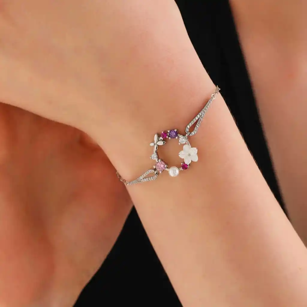 Sevdiklerinize duygularınızı ifade etmenin en özel ve zarif yolu O’na gönderebileceğiniz şık, rengarenk ve mis kokulu çiçeklerdir. Özel günlerde verilecek hediyeler arasında olan çiçek, bu kez gümüş bileklik ile anlam buldu. En kaliteli, en parlak, en ışıltılı taşlarla hazırlanmış gümüş çiçek kadın bileklik sevgisini bir kez daha anlatmak isteyenleri, sen bir çiçeksin demek isteyenleri bekliyor. Bu özel tasarım gümüş manolya çiçeği kelebek kadın bileklik 925 ayar gümüşten imal edilmiştir. Gümüş üzerine rodyum kaplama yapılmıştır. Rodyum kaplama yapılan gümüş kadın bileklik modelleri parlaklığını uzun süre muhafaza eder ve oksitlenmesi gecikir. Bileklik üzerinde bulunan beyaz taş zirkondur. Tüm kadın gümüş bileklik modellerinde olduğu gibi gümüş manolya çiçeği kadın bileklik de el emeği ile üretilmiştir. Gümüş ve değerli taşlar nedeniyle belirtilen ürün ağırlığında ± %10 sapma olabilmektedir.