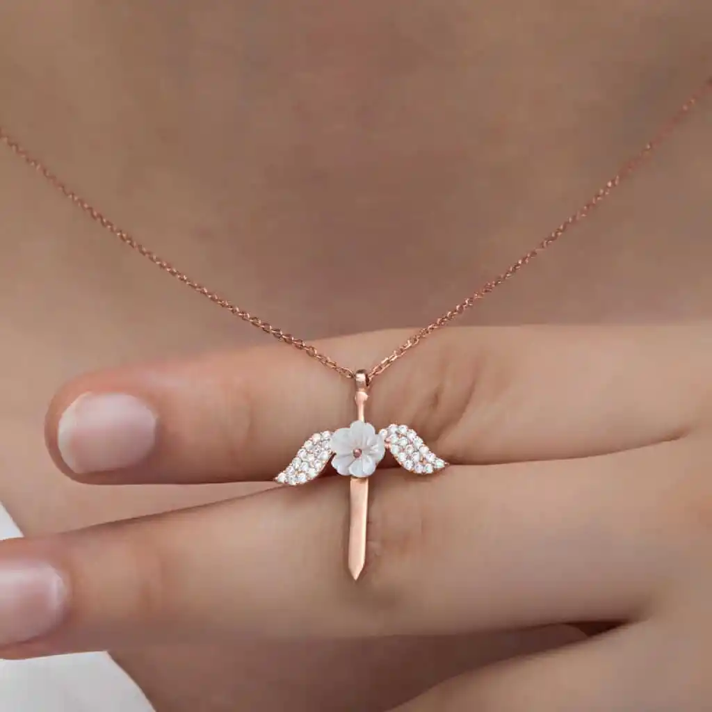 Melekler saflığın ve temizliğin simgeleridir. Bu nedenle melek kolye hediye edilen kişiye melek kadar saf ve temiz olduğu mesajı verilmektedir... Aşkınızı meleklerin koruması için tasarlanan bu özel manolya çiçeği melek kadın kolyeyi sevgilinize; doğum günü, sevgililer günü ve özel günlerde hediye ederek onları mutlu edebilirsiniz. Kolye; 925 ayar gümüşten imal edilmiştir. Gümüş melek kadın kolye üzerine rodyum kaplama yapılmıştır. Rodyum kaplama yapılan tüm kolyeler parlaklığını uzun süre muhafaza eder, gümüşe pembe rengi verir. Tüm gümüş kolyelerde olduğu gibi bu gümüş manolya çiçeği melek kadın kolye de el emeği ile üretilmiştir. Gümüş ve değerli taşlar nedeniyle ürün ağırlığında ± %10 sapma olabilmektedir.