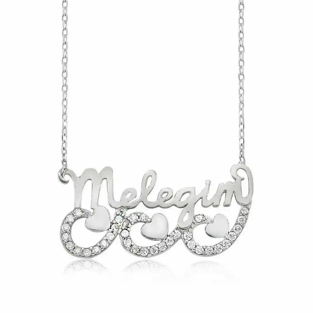 Gümüş Meleğim Yazılı Kalpli Bayan Kolye