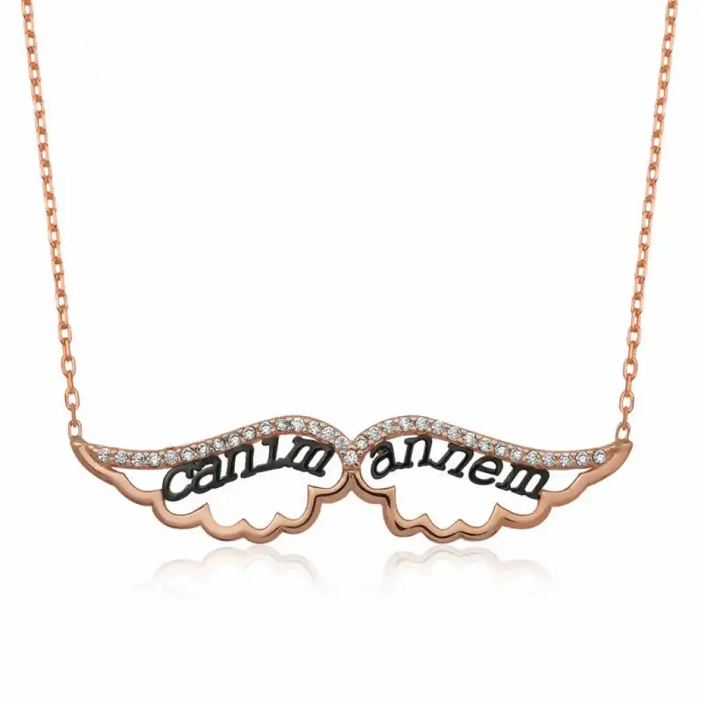 Saf ve tertemiz annelerimiz tıpkı melekler gibidir... Melek annelerimiz için tasarlanan bu şık kolye; anneler günü, doğum günü yada özel günlerde hediye ederek onları mutlu edebilirsiniz... Bu özel melek canım annem tasarımı 925 ayar gümüşten imal edilmiştir... Tasarım melek canım annem bayan kolye üzerinde bulunan taşlar zirkondur. Bu bayan gümüş kolye üzerine rose kaplama yapılmıştır. Rose kaplama yapılan tüm kolyeler parlaklığını uzun süre muhafaza eder, gümüşe pembe rengini verir ve oksitlenmeyi geciktirir. Zincir boyu ortalama 45 cm"dir. Tüm gümüş kolyelerde olduğu gibi bu gümüş melek canım annem bayan kolye de el emeği ile üretilmiştir. Gümüş ve değerli taşlar nedeniyle ürün ağırlığında ± %10 sapma olabilmektedir.