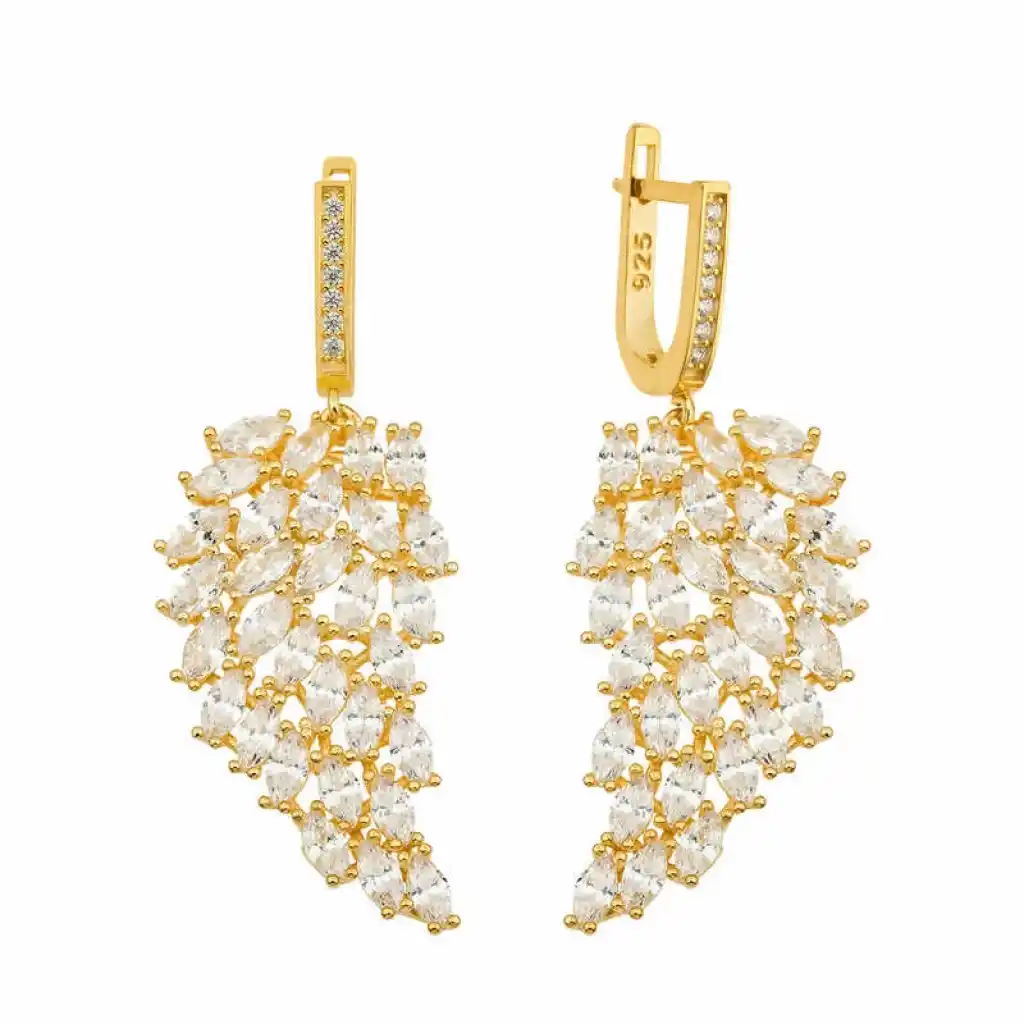 Zirkon taşlarla kaplı ışıl ışıl melek kanadı gümüş küpe ile kanatsız meleğinize tek eksiğini verip, onu sevindirebilirsiniz. "Benim sevgilim bir melek" diyorsanız, melek kanadı yüzük tam da sevgilinize göre… Melek kanadı gümüş küpe, hayatınızın aşkı için uygun bir hediye olduğu kadar, anneniz ya da kız kardeşiniz için de son derece uygundur. Hayatınız da değer verdiğiniz mutlu etmek istediğiniz sevdiklerinizi meleklere layık bir hediye ile sevindirin. 925 ayar gümüşten imal edilmiştir. Gümüş üzerine gold kaplama yapılmıştır. Gold kaplama yapılan küpeler parlaklığını uzun süre muhafaza eder, oksitlenmesi gecikir. Gümüş melek kanadı bayan küpe üzerinde bulunan taşlar zirkondur. Tüm yüzük modellerimiz tamamı el emeği ile üretilmiştir. Gümüş ve değerli taşlar nedeniyle belirtilen ortalama ürün ağırlığında ± %10 sapma olabilmektedir.