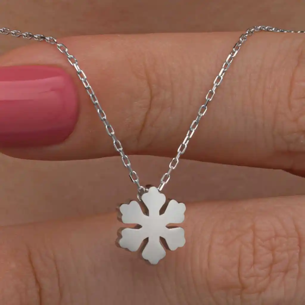 Kadınların ışıltısı, berraklığı kar tanesine benzetilip özel olarak tasarlanmıştır. Kar tanelerinin her birinin kadınlar gibi eşsiz ve ayrı kıymette olması onları özel kılan bir diğer özelliktir. Asilliği her dönemde dikkat çekmeyi başarmıştır. Bunun yanında insanların tıpkı kar taneleri gibi birbirlerine zarar vermeden de mutlu bir şekilde yaşayabileceklerini sembolize etmektedir. Bu şık kolye; doğum günü hediyesi, sevgililer günü hediyesi veya annelere hediye olarak özel günlerde tercih edilebilecek mükemmel bir seçenektir. Kolye, 925 ayar gümüşten imal edilmiştir. Gümüş üzerine rodyum kaplama yapılmıştır. Rodyum kaplama yapılan gümüş kadın kolye modelleri parlaklığını uzun süre muhafaza eder, oksitlenmesi gecikir. Zincir boyu ortalama 45 cm"dir. Tüm gümüş kadın kolye modellerinde olduğu gibi bu gümüş minimal kar tanesi kadın kolye de tamamı el emeği ile üretilmiştir. Gümüş ve değerli taşlar nedeniyle belirtilen ortalama ürün ağırlığında ± %10 sapma olabilmektedir.