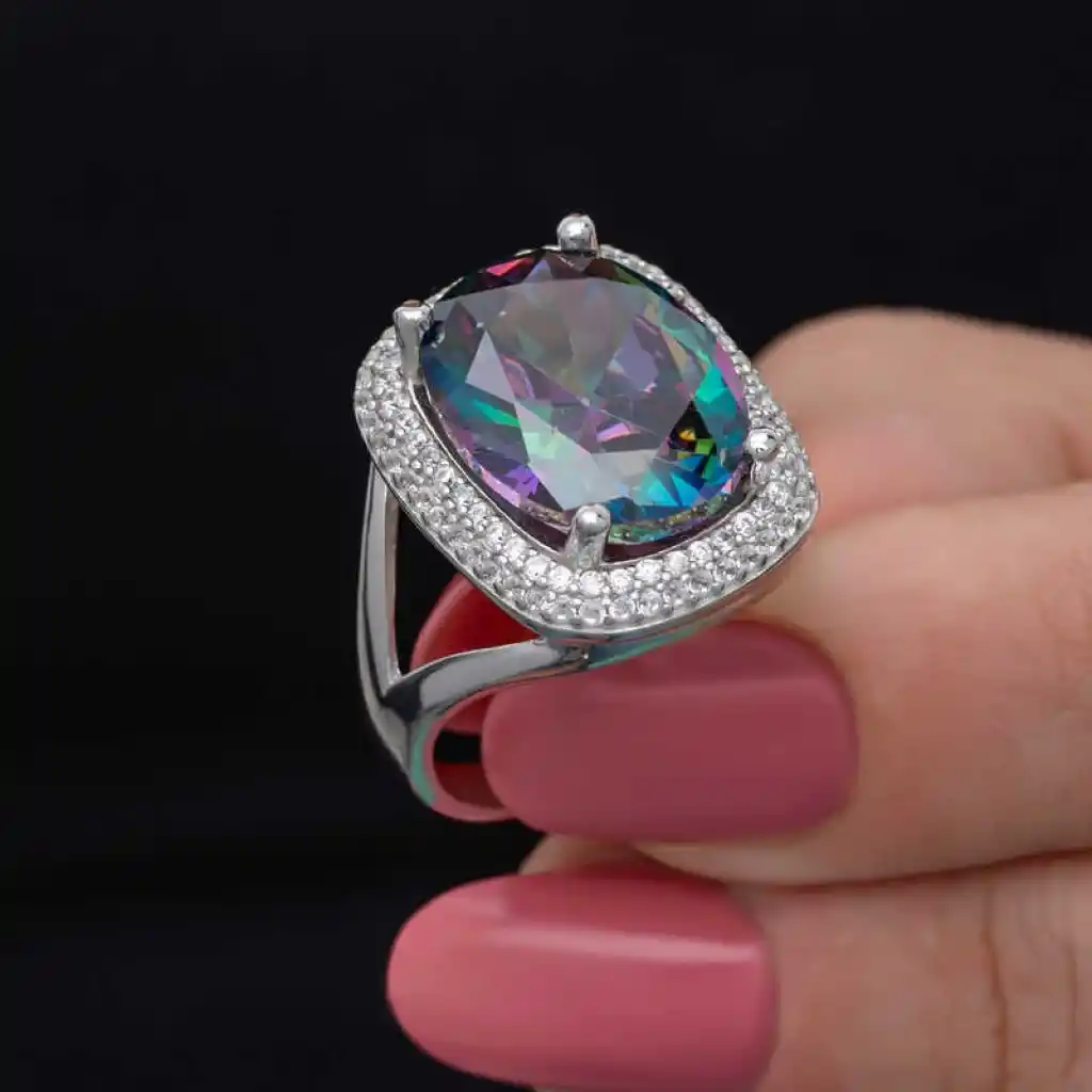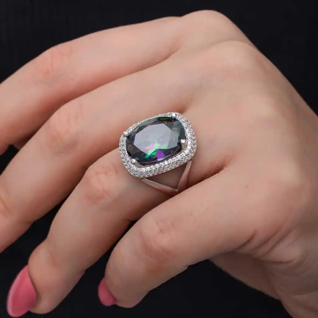Yüzyıllardır imajınızın simgesi olan takılar, birbirinden özel tasarım koleksiyonlarda sizlerle buluşuyor. Günlük hayatınızdan özel günlerinize kadar her anınızda yanınızda olan gümüş yüzük modelleriyle sizlerde tarzınızı yansıtın. Bu birbirinden farklı dikkat çekici tasarımlar sayesinde ruhunuza hitap eden yaratıcı özgünlüğü ortaya koymaya başlayın. Hayalinizdeki kombinleri gerçeğe dönüştürebileceğiniz gümüş yüzük çeşitleri ile girdiğiniz her ortamda ilgi çekici stiliniz ile ön plana çıkmak artık çok kolay... Mistik taşlı kadın yüzük 925 ayar gümüşten imal edilmiştir, üzerine rodyum kaplama yapılmıştır. Gümüş yüzük modellerimizin tamamı el emeği ile üretilmiştir. Gümüş ve değerli taşlar nedeniyle belirtilen ortalama ürün ağırlığında ± %10 sapma olabilmektedir.