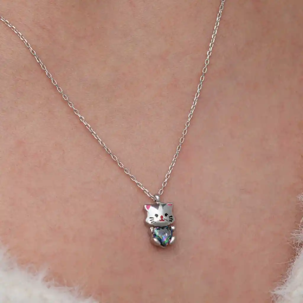 Kediler, bağımsızlıklarıyla bilinir. Bu nedenle, kedi kolyeleri özgür ruhları simgeler ve takanın kendine olan güvenini vurgular.Evlerimizin sevimli neşe kaynağı kediler, temiz olmalarının yanı sıra masumiyetin simgesidir. Asil ve mantıklı bir kişiliğe, mükemmel sezgilere ve akılcı bir duyarlılığa sahiptirler. Bu şık kolye; doğum günü hediyesi, sevgililer günü veya özel günlerde tercih edilebilecek mükemmel bir seçenektir. Kolye; 925 ayar gümüşten imal edilmiştir. Gümüş üzerine rodyum kaplama yapılmıştır. Gümüş ve değerli taşlar nedeniyle belirtilen ortalama ürün ağırlığında ± %10 sapma olabilmektedir.