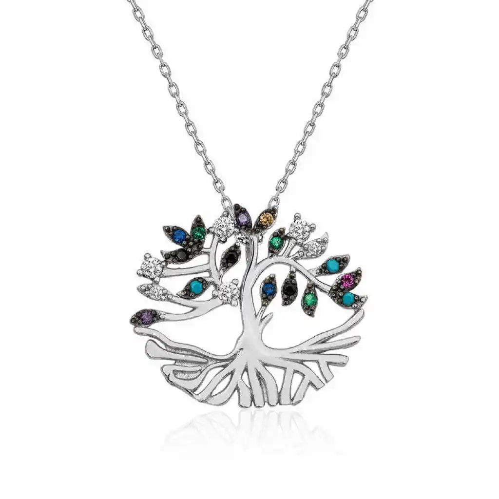 Gümüş Mix Taşlı Tuba Ağacı Kolye