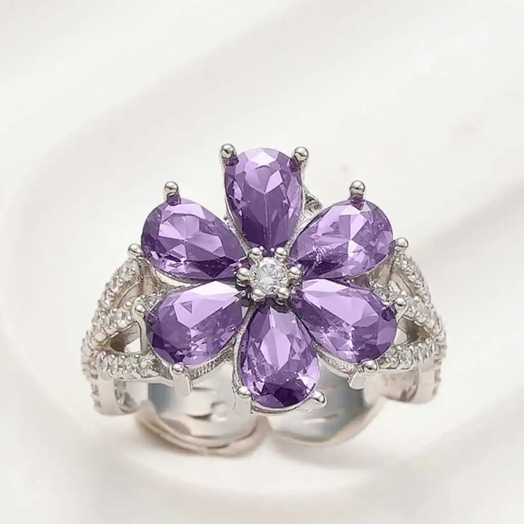 Gümüş Ayarlanabilen Mor Sevgi Çiçeği Kadın Yüzük