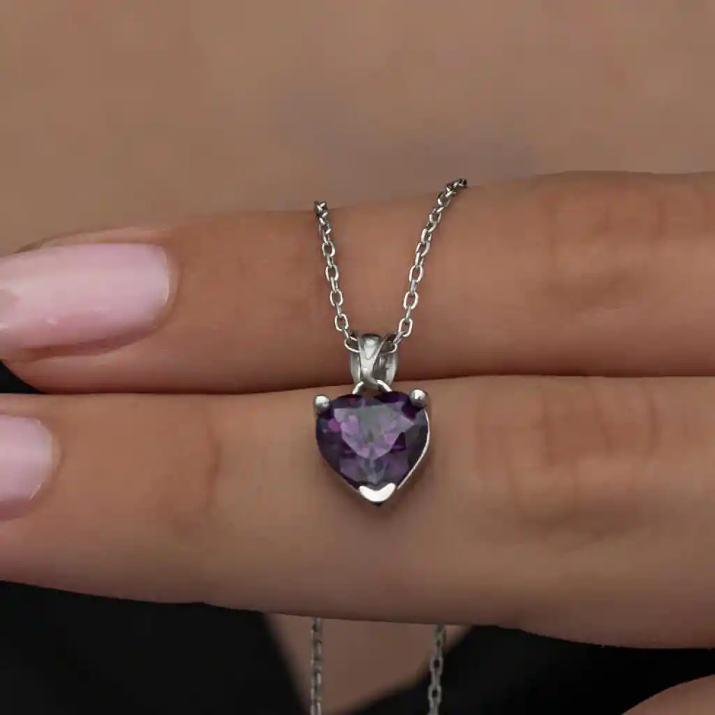 Gümüş Mor Taşlı Kalpli Kadın Kolye