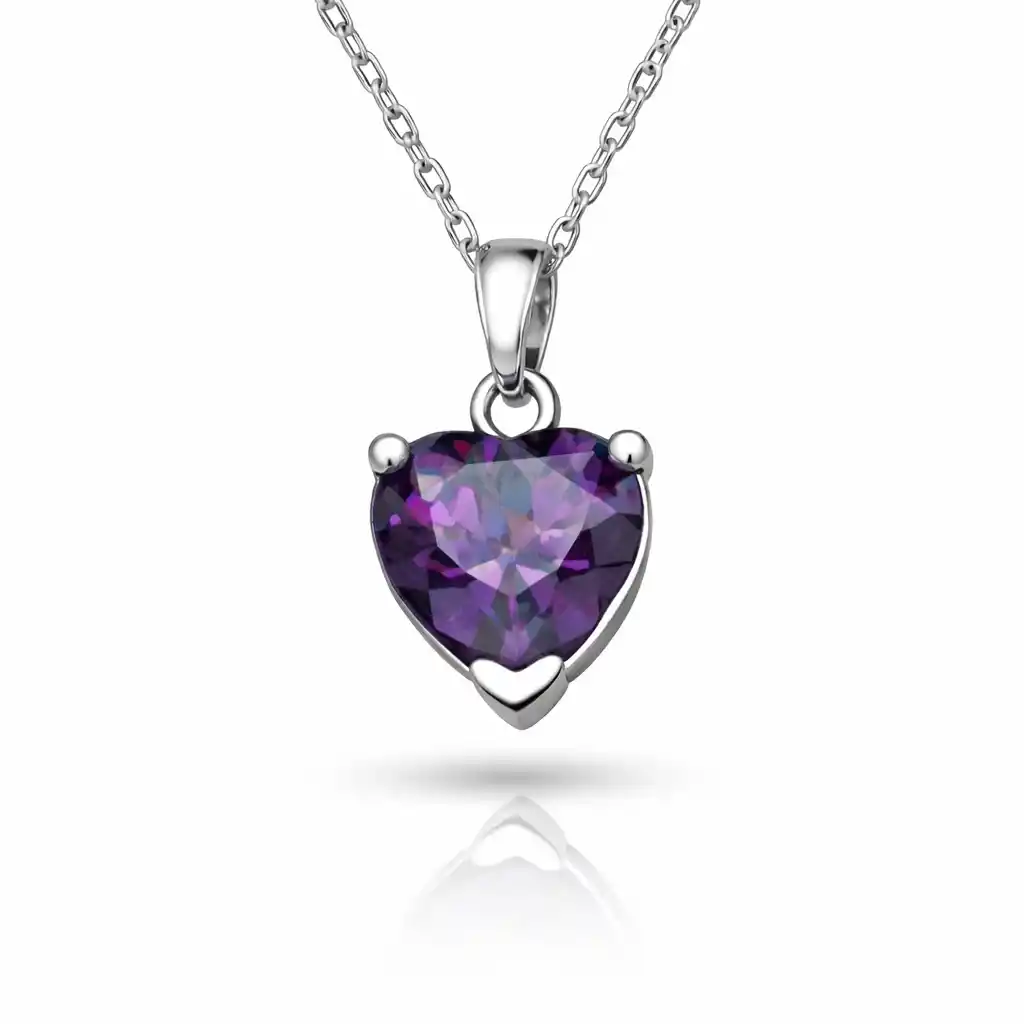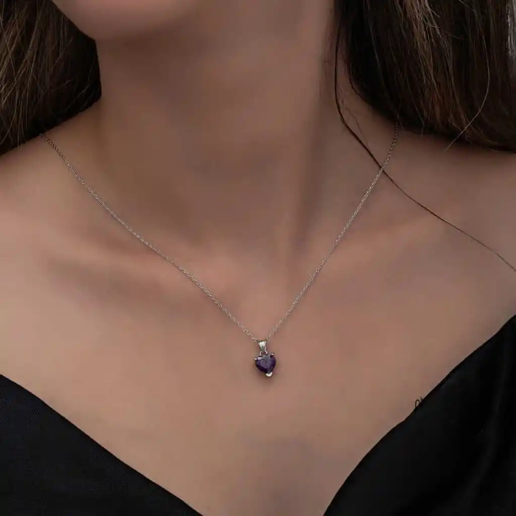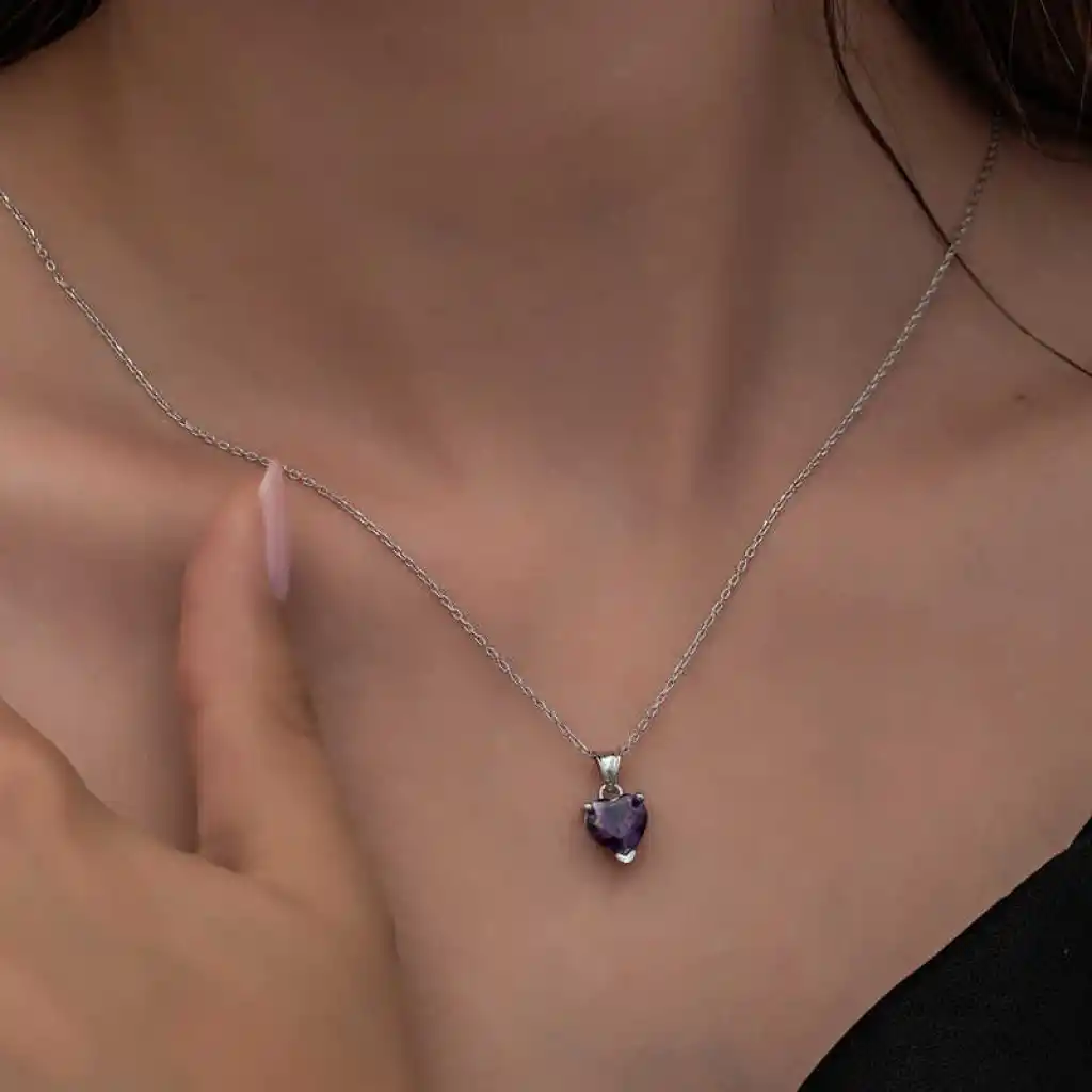 Gümüş Mor Taşlı Kalpli Kadın Kolye