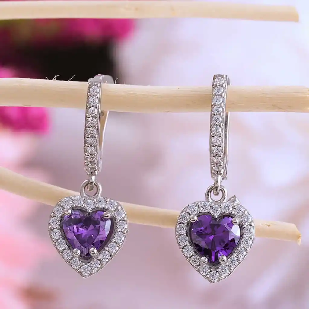 Gümüş Mor Taşlı Kalpli Kadın Küpe
