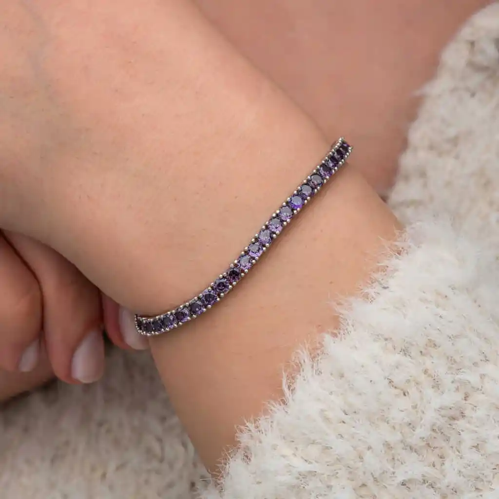Gümüş Mor Zirkon Taşlı Su Yolu Kadın Bileklik