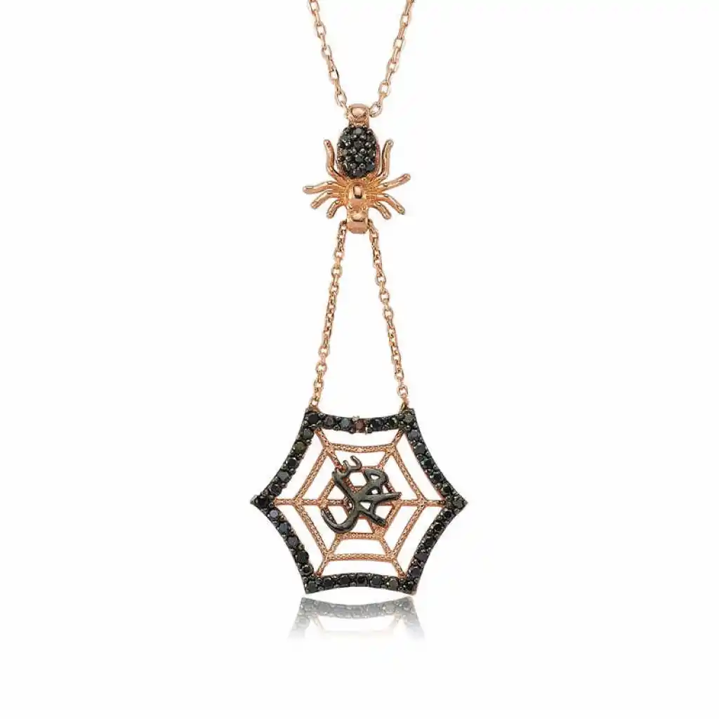 Gümüş Muhammed Yazılı Örümcek Ağı Bayan Kolye