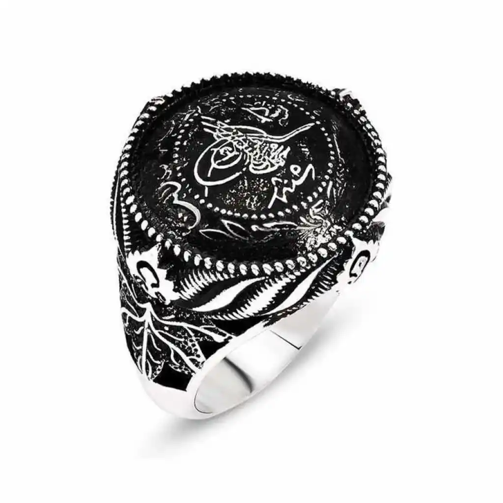 Tuğra, Osmanlı sultanlarının imzası anlamına gelir. Her tuğra; ona ait olan padişahın ismini, varlığını, hükümdarlığını ifade eder. Tuğra sembolü her padişaha göre farklı olmak üzere birçok şekilde günümüze ulaşmıştır. Tuğra Osmanlının her döneminde korunmuş, önemini hiç kaybetmemiştir. Ve zamanla hat sanatımızda da önemli bir yere sahip olup, günümüzde hattatlar tarafından sanatsal olarak yaşatılmaktadır. Bu sanatı yansıtan gümüş yüzüğü severek kullanabilir ve sevdiklerinize hediye edebilirsiniz. Mühr-ü Ala Erkek Yüzük Modeli 925 ayar gümüşten imal edilmiştir. Gümüş üzerine oksit kaplama yapılmıştır. Tüm gümüş erkek yüzüklerinde olduğu gibi gümüş mührü ala erkek yüzük modeli de tamamen el emeği ile üretilmiştir. Gümüş ve değerli taşlar nedeniyle belirtilen ortalama ürün ağırlığında ± %10 sapma olabilmektedir.