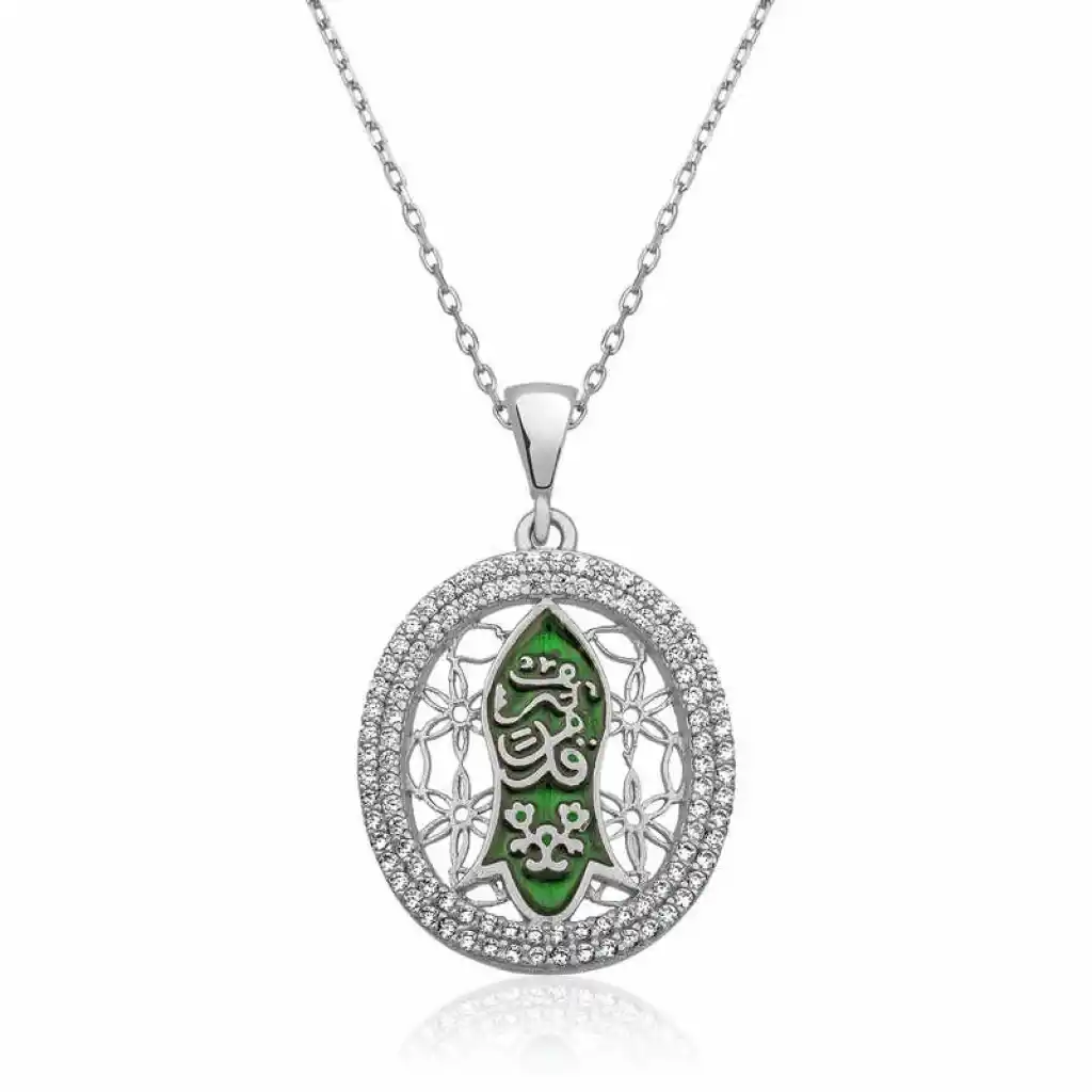 Kademi Şerif Hz. Muhammed’in ayak izidir. Nalı Şerif olarak da bilinir. Bu anlamda manevi değeri yüksek olan bu kolye severek kullanabileceğiniz ve sevdiklerinize verebileceğiniz güzel bir hediye olacaktır. Bu şık kolye tasarımı 925 ayar gümüşten imal edilmiştir. Gümüş üzerine rodyum kaplama yapılmıştır. Rodyum kaplama yapılan gümüş bayan kolye modelleri parlaklığını uzun süre muhafaza eder, oksitlenmesi gecikir. Kolye üzerinde bulunan taşlar zirkondur. Kolyenin zinciri 925 ayar gümüşten imal edilmiştir boyu ortalama 45 cm"dir. Tüm bayan kolye modellerimizde olduğu gibi Kademi Şerif bayan gümüş kolye de el emeği ile üretilmiştir. Gümüş ve değerli taşlar nedeniyle ürün ağırlığında ± %10 sapma olabilmektedir.