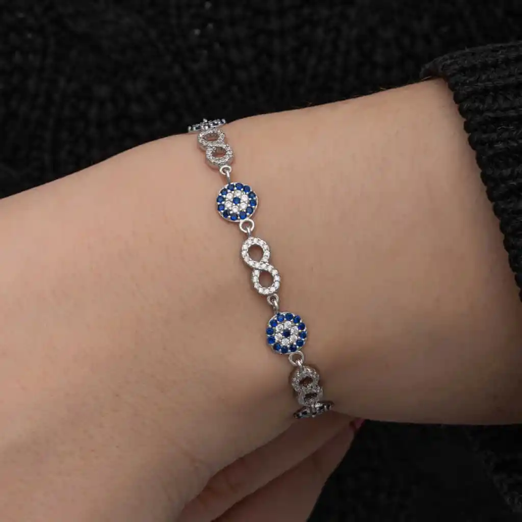 Gümüş Nazar Boncuklu Sonsuzluk Kadın Bileklik