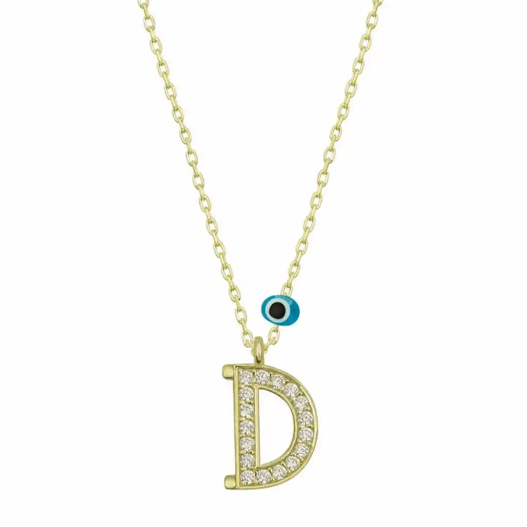 Gümüş Nazar Gold D Harfi Kadın Kolye